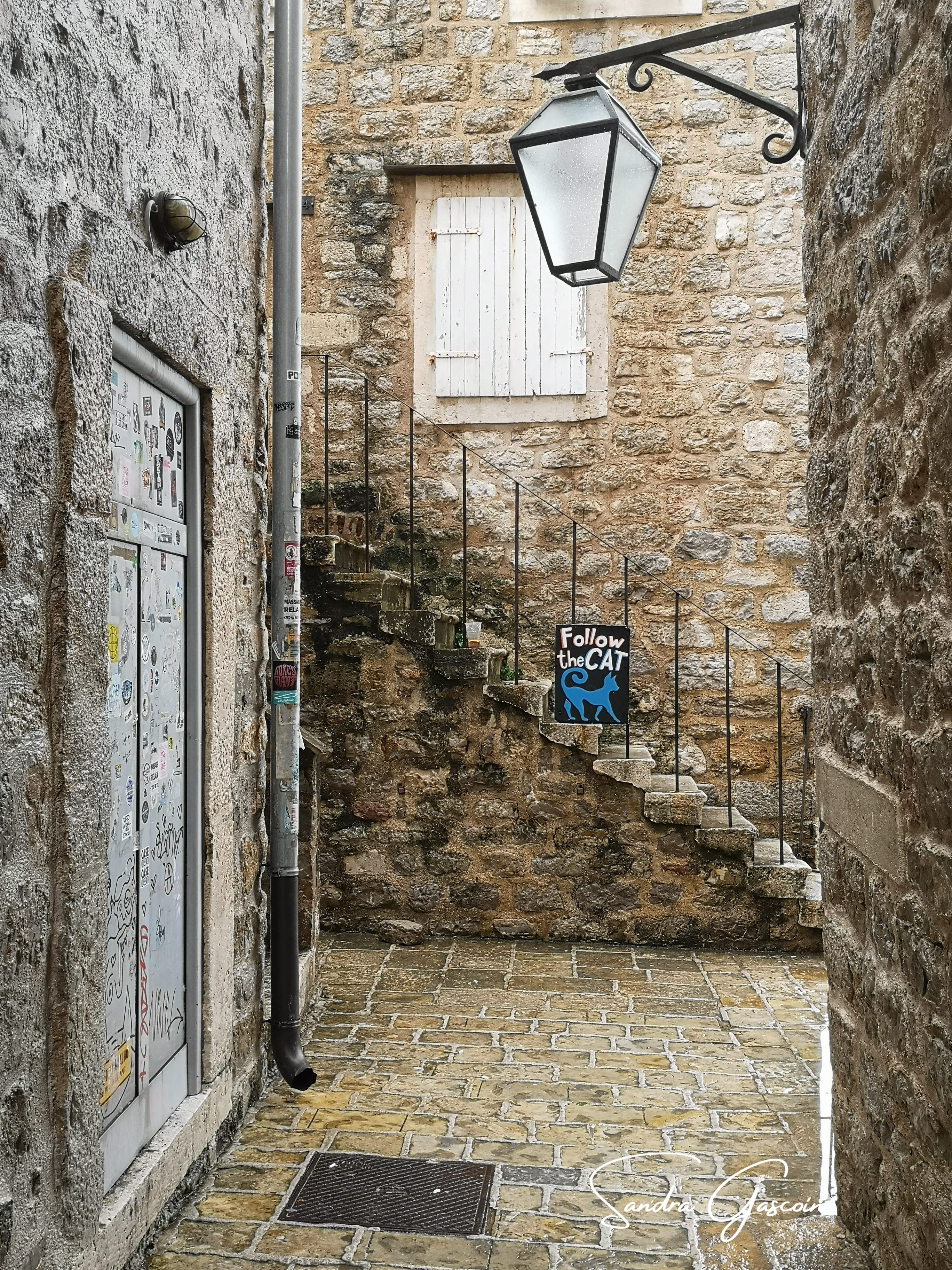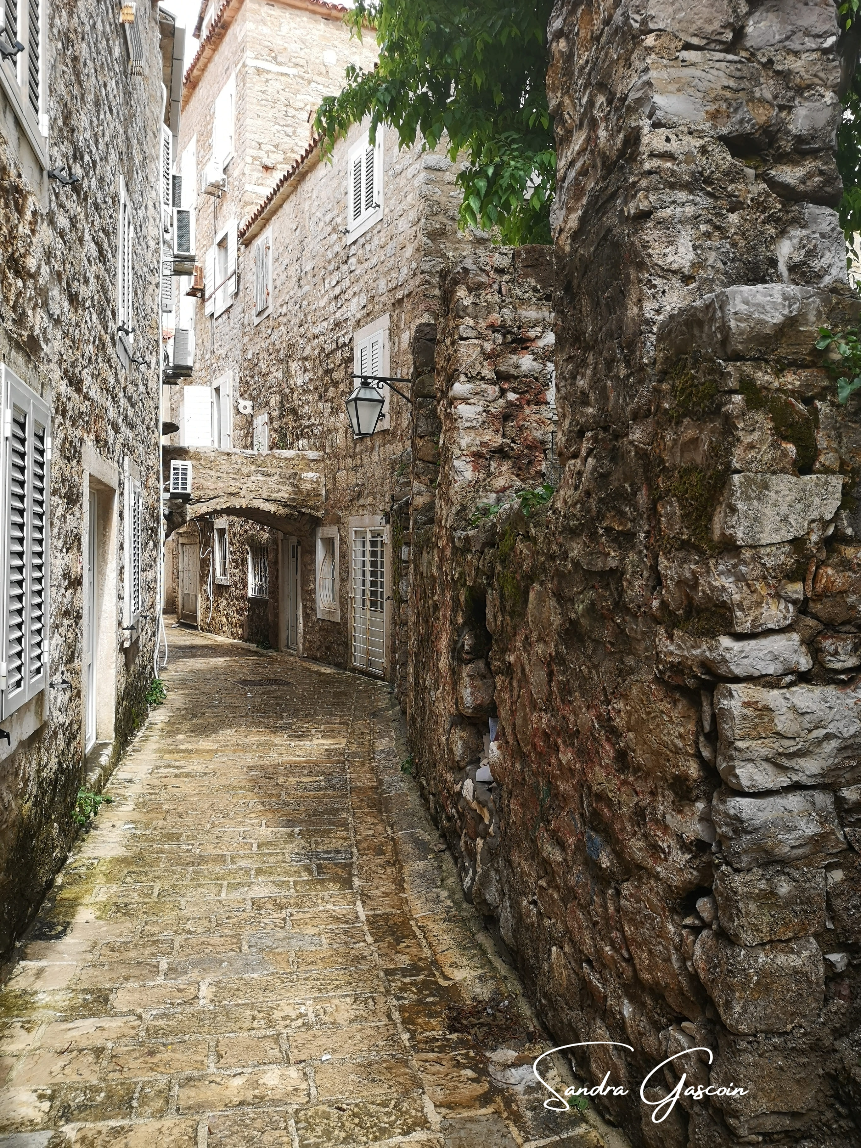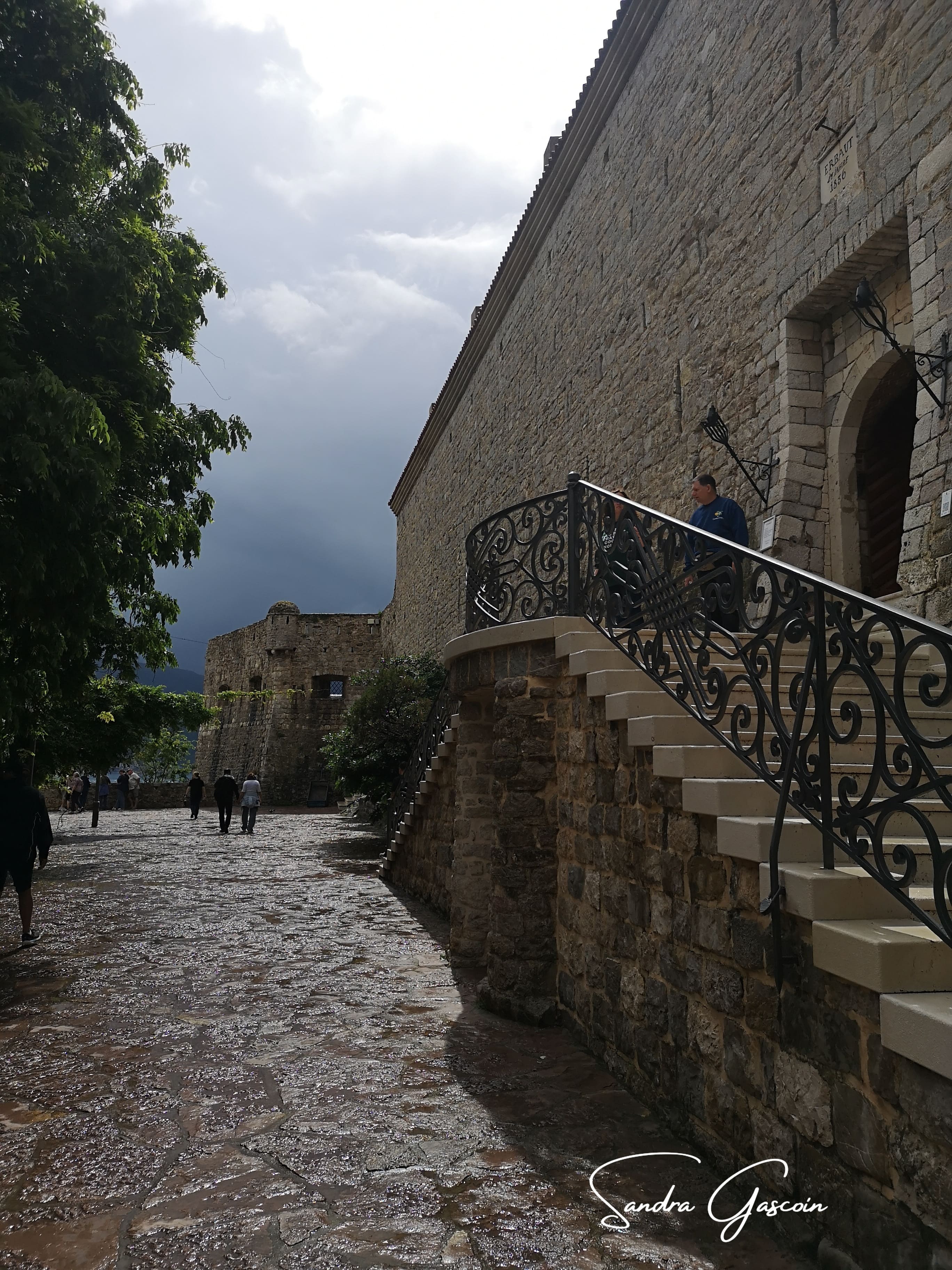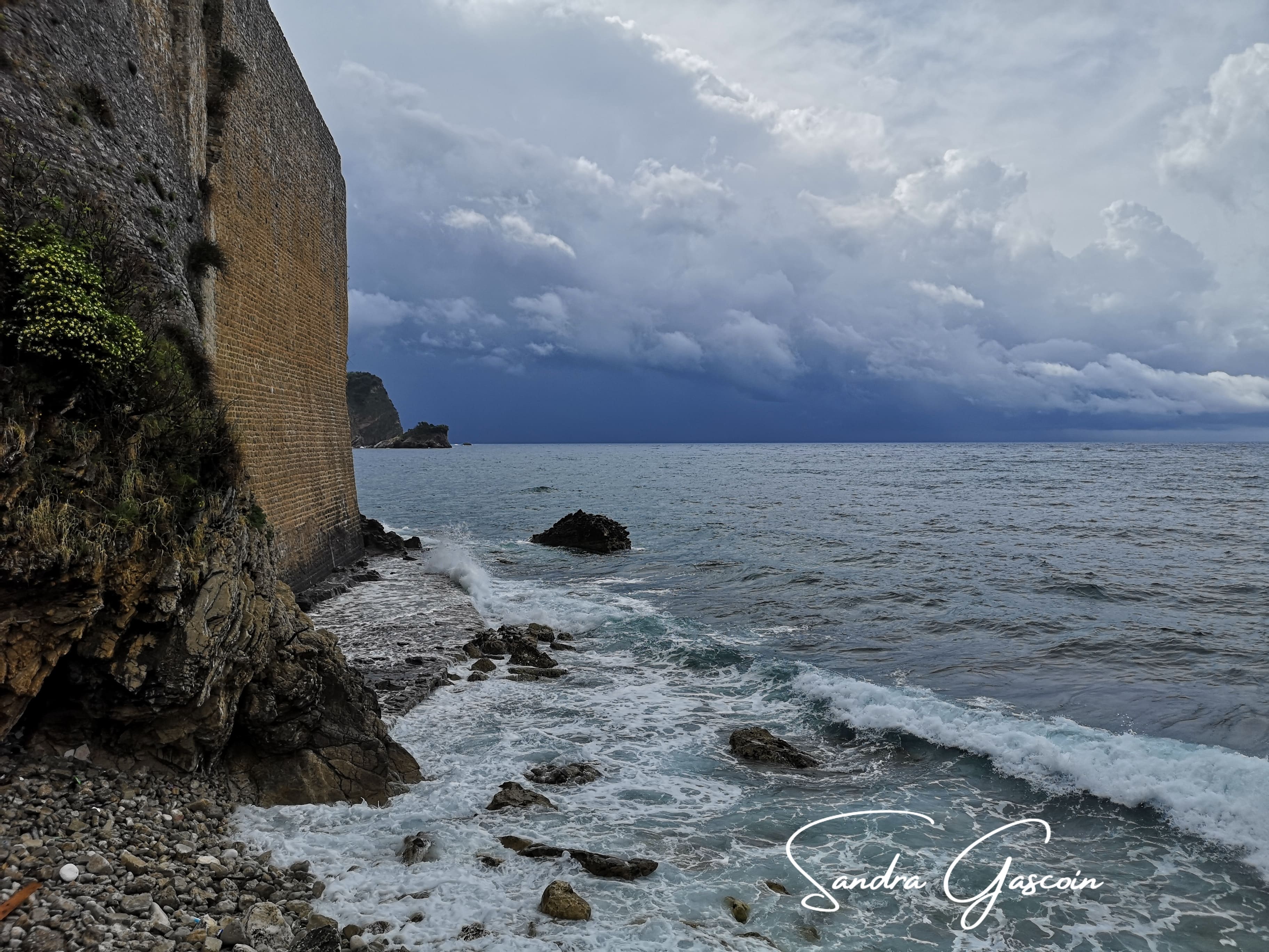 Cette vieille ville (« stari grad » en monténégrin) a été reconstruite à l’identique après le tremblement de terre de 1979. Tout y est d’une propreté impeccable : les pierres polies et luisantes, les ruelles soigneusement entretenues, les petites boutiques pittoresques. Je déambule au gré de mes envies, m’orientant instinctivement vers les endroits les plus tranquilles. La mer se dresse devant moi. Un petit chat, perché sur un muret qui surplombe la mer, se frotte à moi, réclamant des caresses que je lui accorde sans résistance. Je m’aventure dans l’église orthodoxe où se déroule la messe : les femmes se tiennent à gauche, les hommes à droite. Beaucoup de curieux encombrent l’entrée, je me faufile vers l’avant et, après une courte réflexion, me place à gauche aussi. Les prières sont chantées par les prêtres, tandis que l’atmosphère chargée d’effluves d’encens menace de provoquer chez moi des quintes de toux. Au bout d’un quart d’heure je cherche l’air frais et me retire.