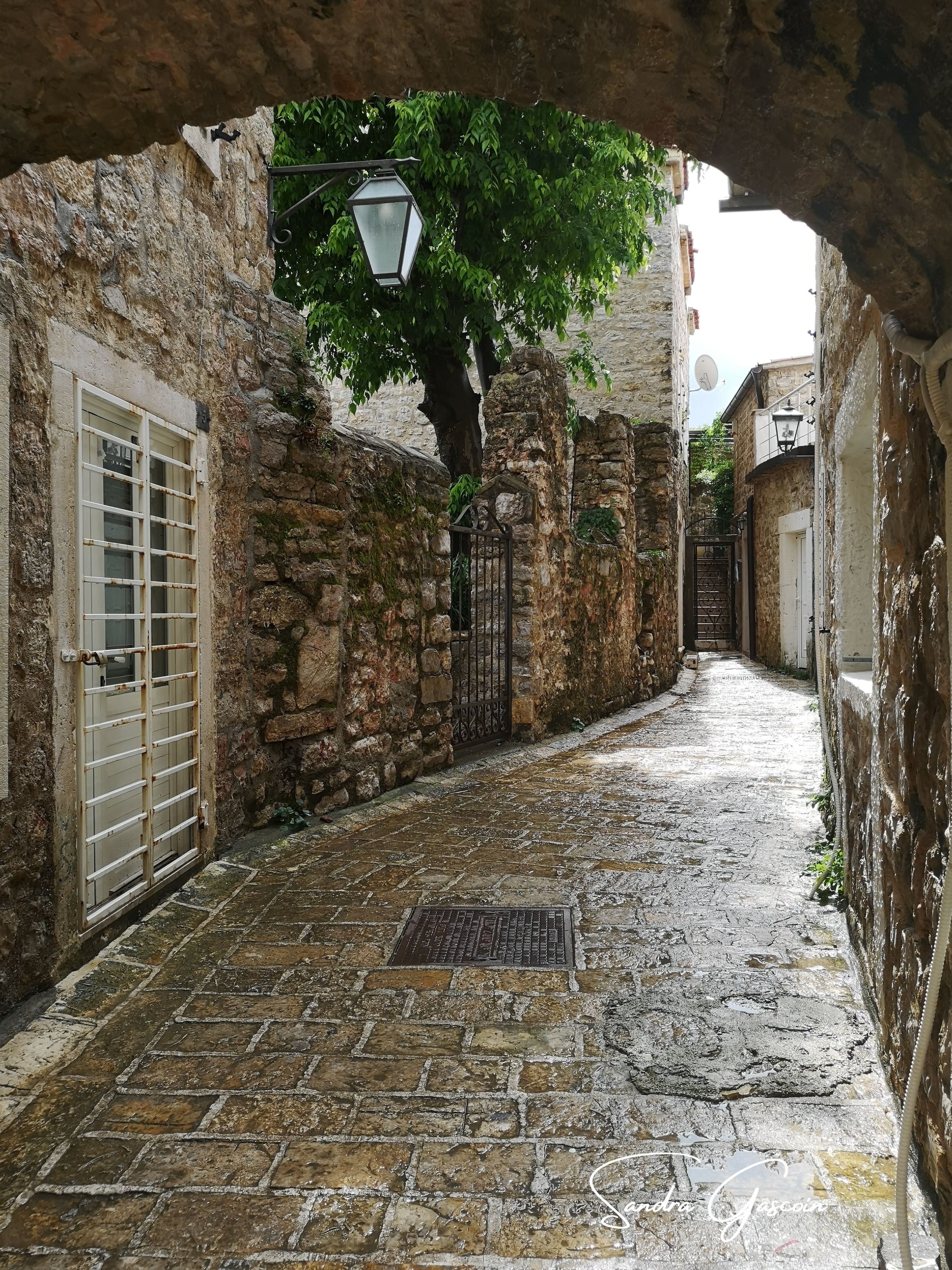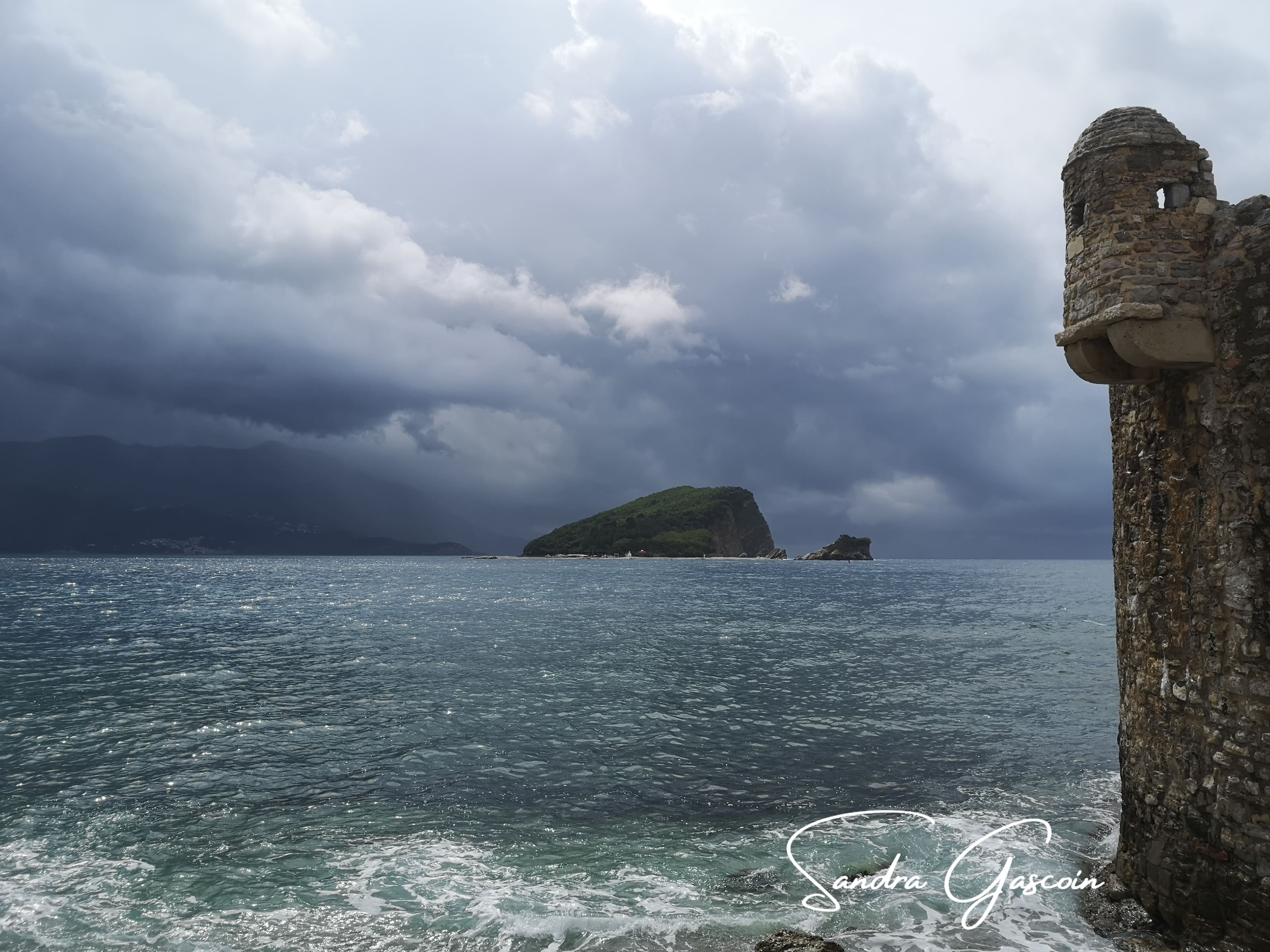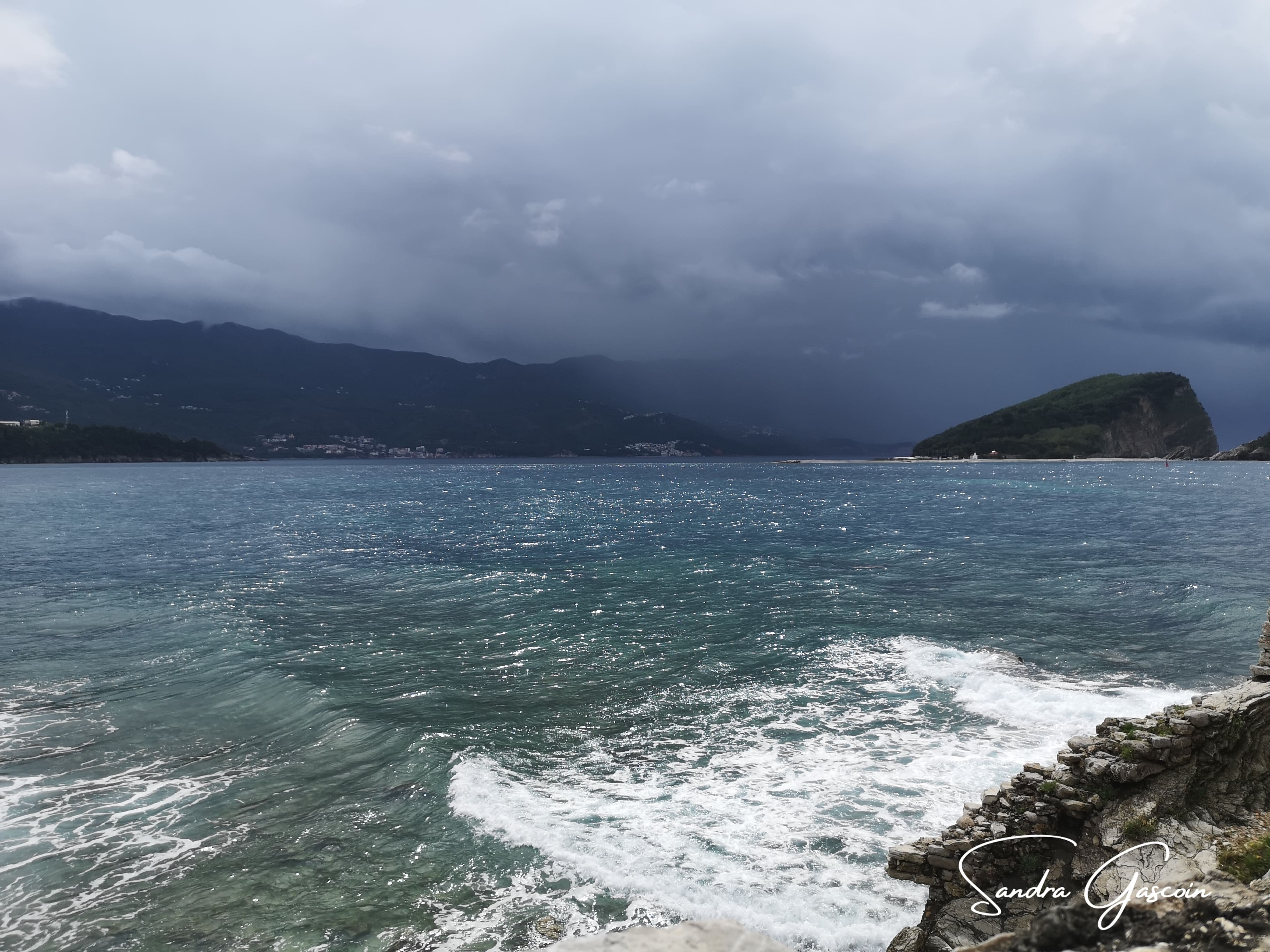 L’averse de la veille, annonciatrice de plusieurs jours de pluie, me pousse à modifier mes plans. Plutôt que de reprendre immédiatement ma marche, je décide de visiter la vieille ville de Budva dès le matin, afin d’éviter les foules des visites organisées et de prendre le bus pour la capitale avant midi. Il est crucial que je me ravitaille avant de remarcher. Nous sommes le 2 mai, je compte faire des courses dans la capitale. Avec un peu de chance je trouverai peut-être également la cartouche de gaz compatible avec mon réchaud.