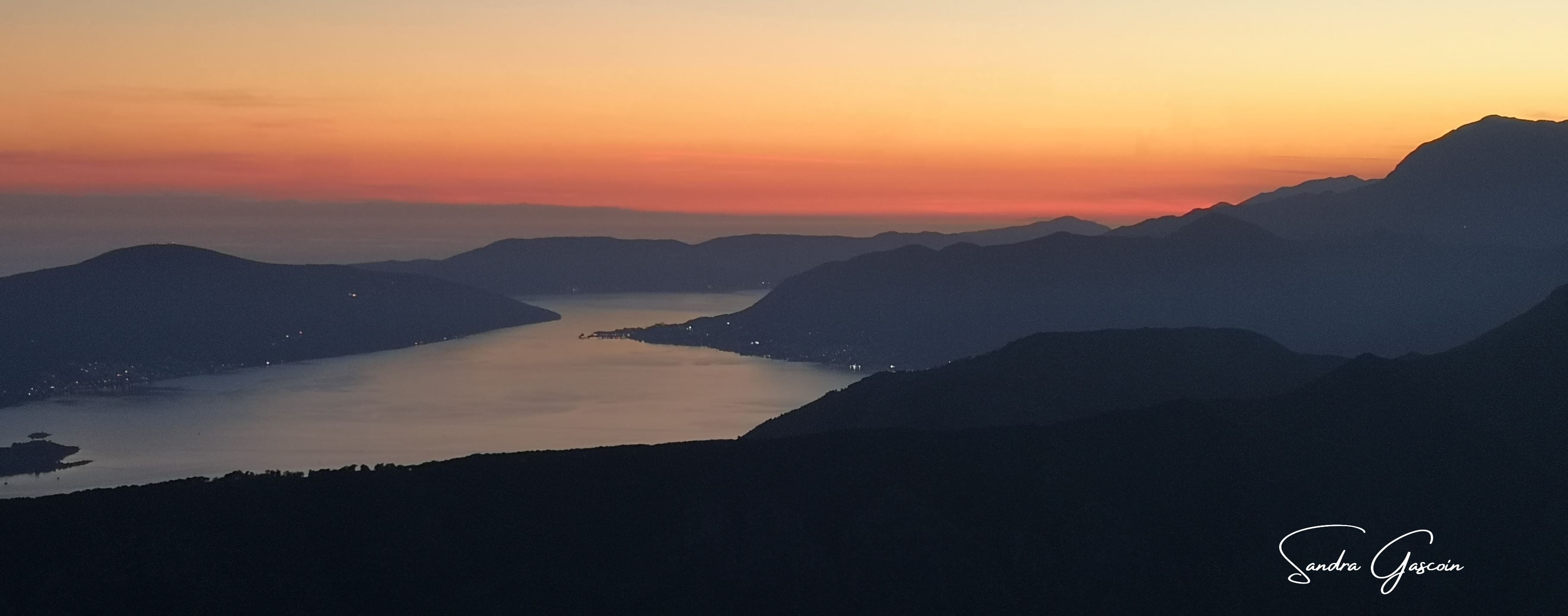 Je recontacte Marina pour qu’elle vienne me chercher comme elle me l’avait proposé. J’apprends plus tard que je les ai dérangés pendant leur repas. Ce couple est tellement généreux et adorable. Quelle aubaine de les avoir rencontrés! Marina continue d’ailleurs à me chouchouter et me propose un délicieux goulasch fait maison. Avant de partir et retourner sur le trail, elle insiste pour me donner deux oeufs durs et un concombre. C’est du poids en plus, il me faudra tout manger rapidement ! Le couple me remonte en voiture jusqu’au col de Krstac alors que je pensais faire du stop (je pense que beaucoup de touristes remontent pour admirer le coucher de soleil sur la baie, qui est parait-il le plus beau d’Europe). Les adieux sont chaleureux, j’espère pouvoir à mon tour les accueillir chez moi et les invite expressément. Il ne me reste qu’à retrouver mon bivouac où je remonte ma maison face à la baie de Kotor disparaissant lentement dans l’obscurité.