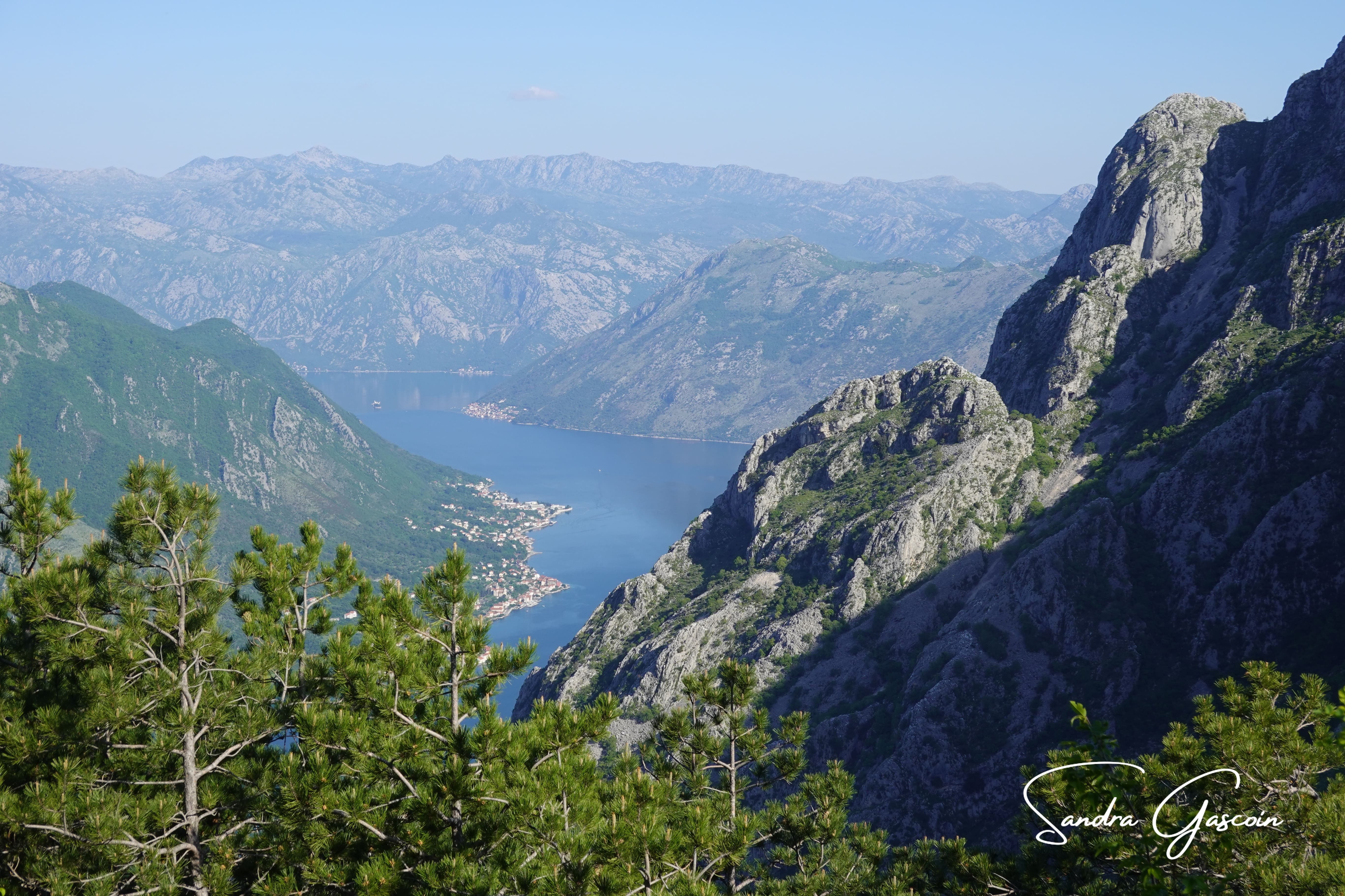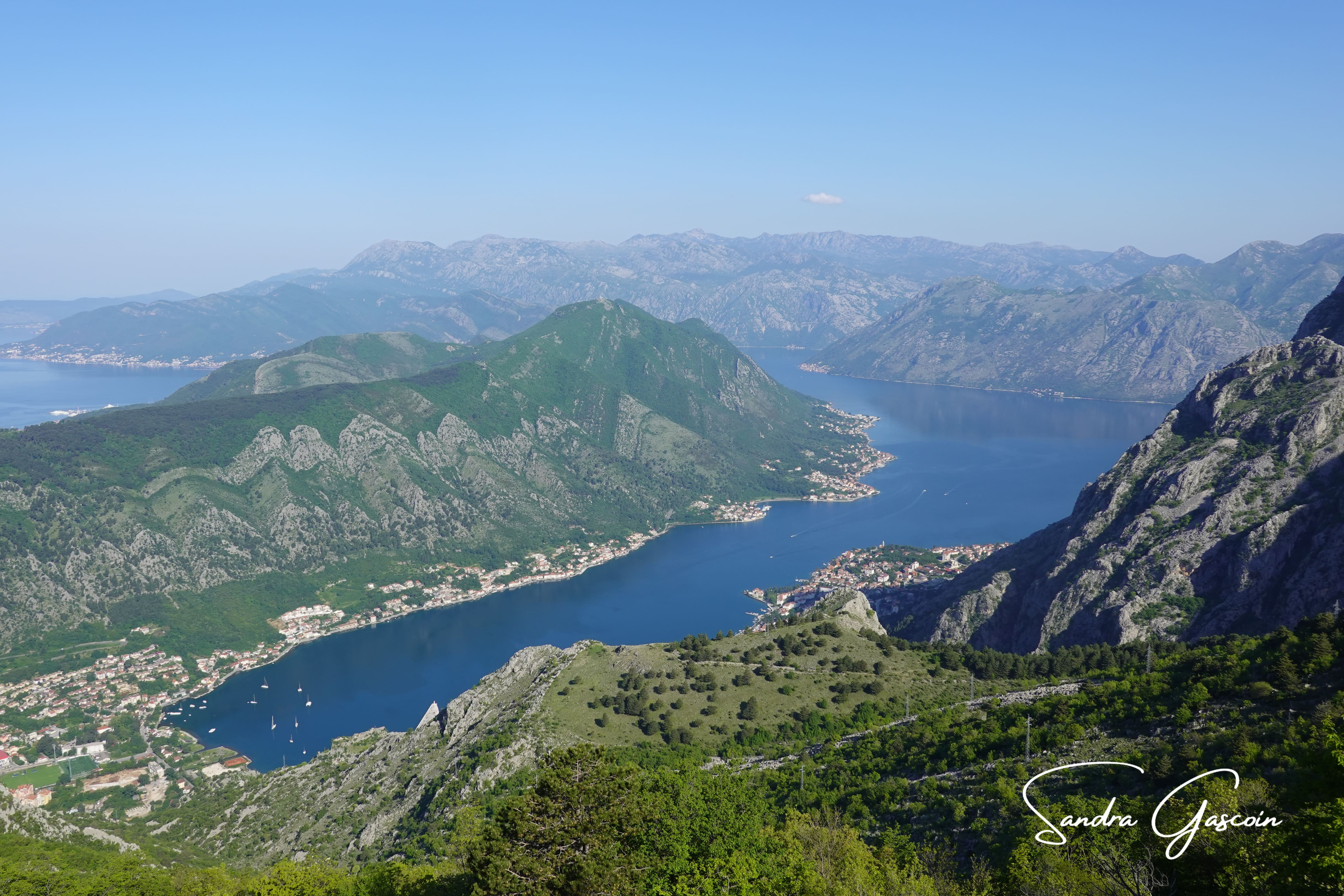 Je me lève de bonne heure pour descendre vers Kotor. Deux chemins s’offrent à moi : le sentier et la route. Cette dernière est en ce sens remarquable qu’elle serpente vertigineusement pour remonter les quelques 900 mètres de dénivelé jusqu’au col de Krstac. L’un des tronçons le plus impressionnant est celui avec 16 virages en épingle à cheveux, escaladant 500 mètres de dénivelé sur les contreforts du Lovćen. Cette « route de serpentine » serait-elle pire que celle menant à Cilaos à la Réunion? Je déniche le sentier qui n’a pas l’air très officiel: l’accès me laisse dubitative et des détritus jonchant le sol ne m’encouragent pas à l’emprunter. Je descends sur deux cents mètres pour m’apercevoir que quand-même, tout cela est bien vertigineux, avec mon gros sac sur le dos. J’hésite à poursuivre, redoutant de me retrouver dans une situation inconfortable. Peut-être aurais-je dû persévérer. Je rebrousse donc chemin et m’élance sur la route. Tout est toujours très calme, pas une voiture. D’après mon application, il y a un autre sentier vers Kotor quelques centaines de mètres plus loin, il est peut-être plus facile et moins raide. Je ne l’ai pas trouvé. Ou alors je suis aveugle! Je continue donc sur l’asphalte dans la fraicheur du matin. Quelques motards circulent mais toujours pas de voiture dans ma direction. Ce sont 22 kilomètres par la route contre 6 par le sentier. Je me demande quand je vais arriver à Kotor ou chez Marina.