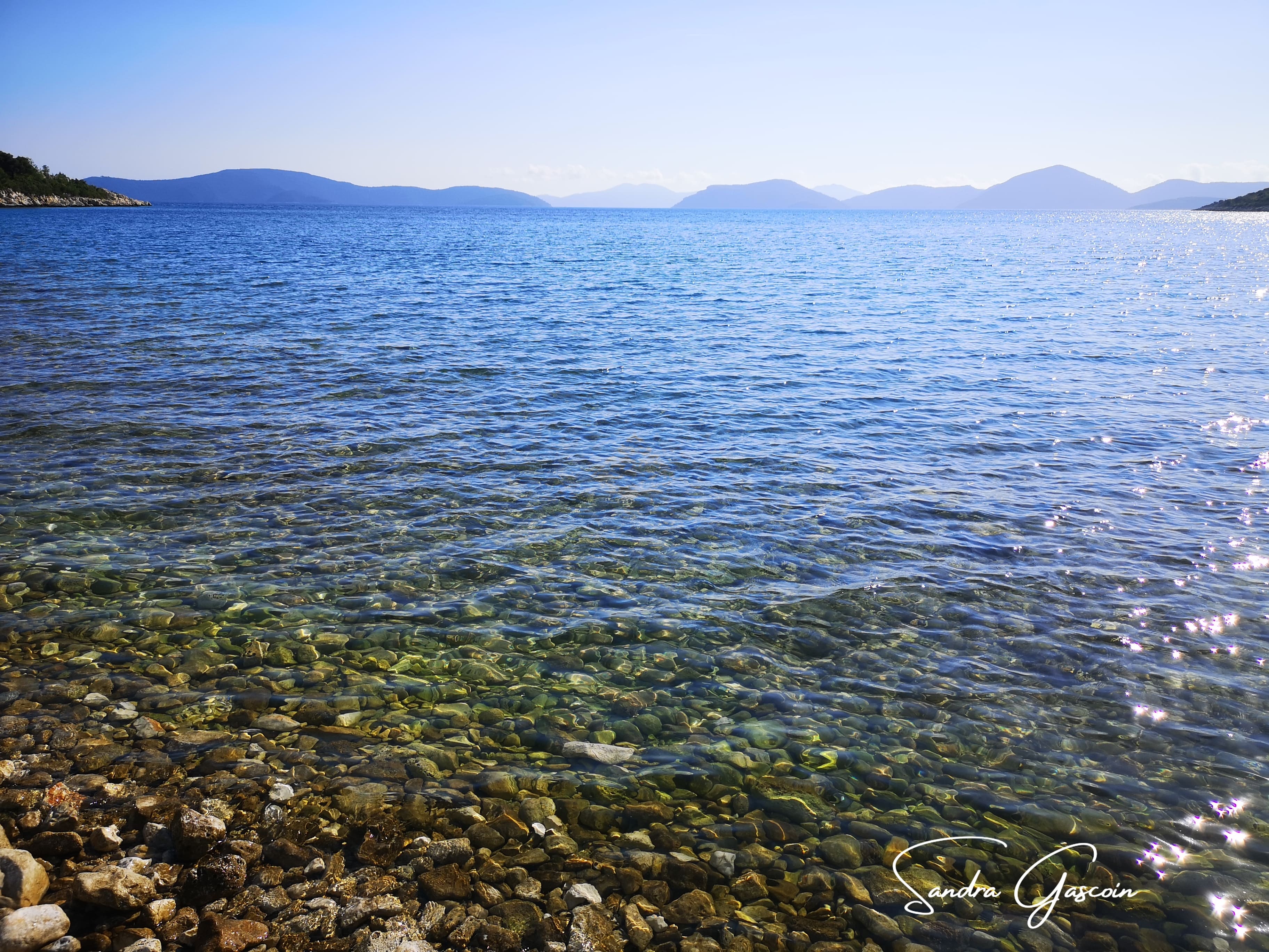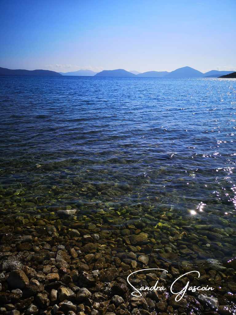 Après une nuit fort reposante et un réveil aux premières lueurs du jour, je reprends ma route dès sept heures du matin. Je remplis mes bouteilles à la fontaine publique sous les grands arbres centenaires. Les huit premiers kilomètres se font sur une route secondaire dans les hauteurs. Là, loin du tumulte des véhicules, je marche en toute quiétude. Dès que l’occasion se présente, j’abandonne l’asphalte, trop dur pour les articulations et impitoyable sous le soleil, pour une piste plus douce. Celle-ci me ramène bientôt à la nationale, dont la traversée se révèle périlleuse. Enfin, je longe la côte, à quelques mètres seulement de la mer.