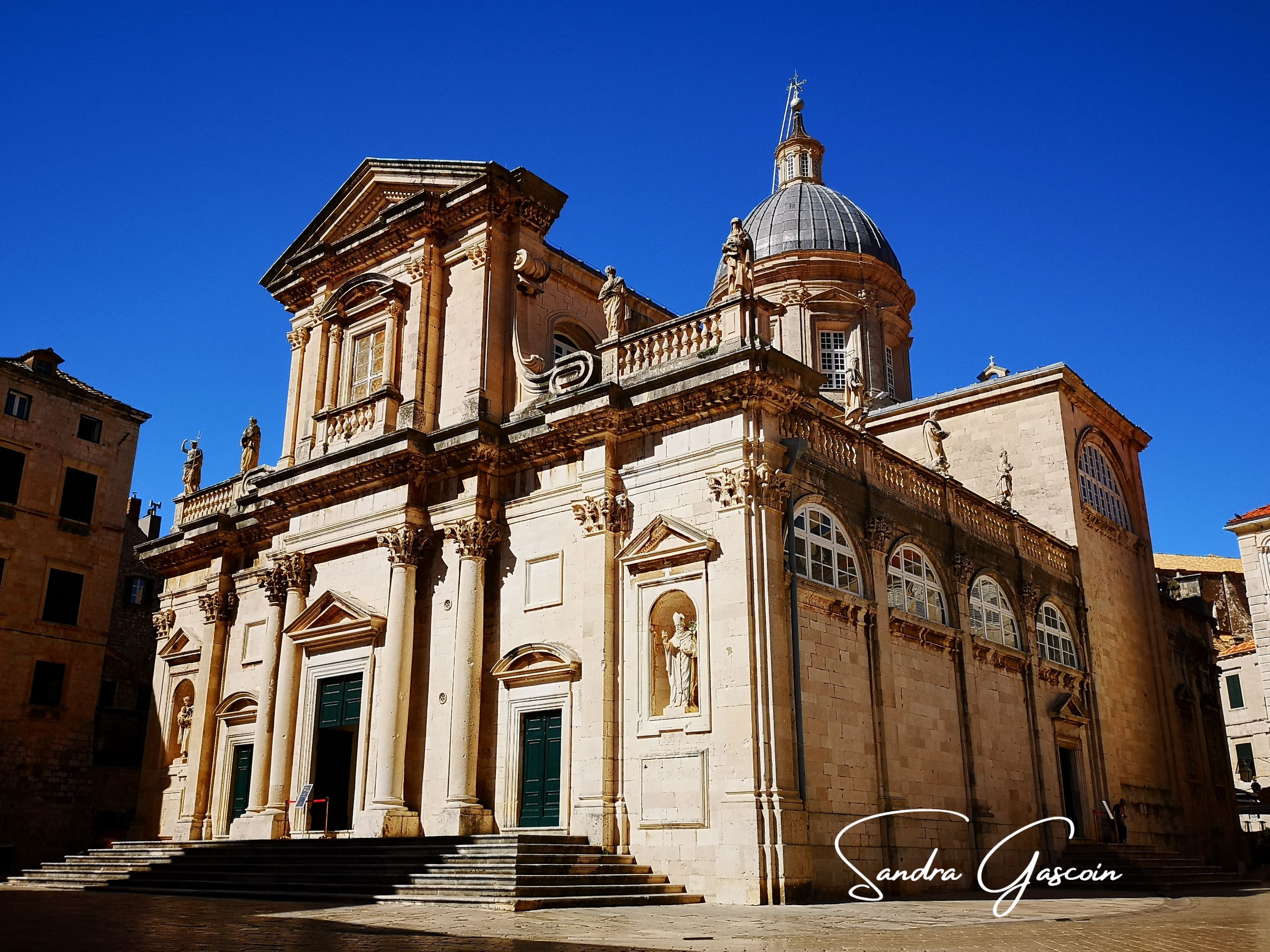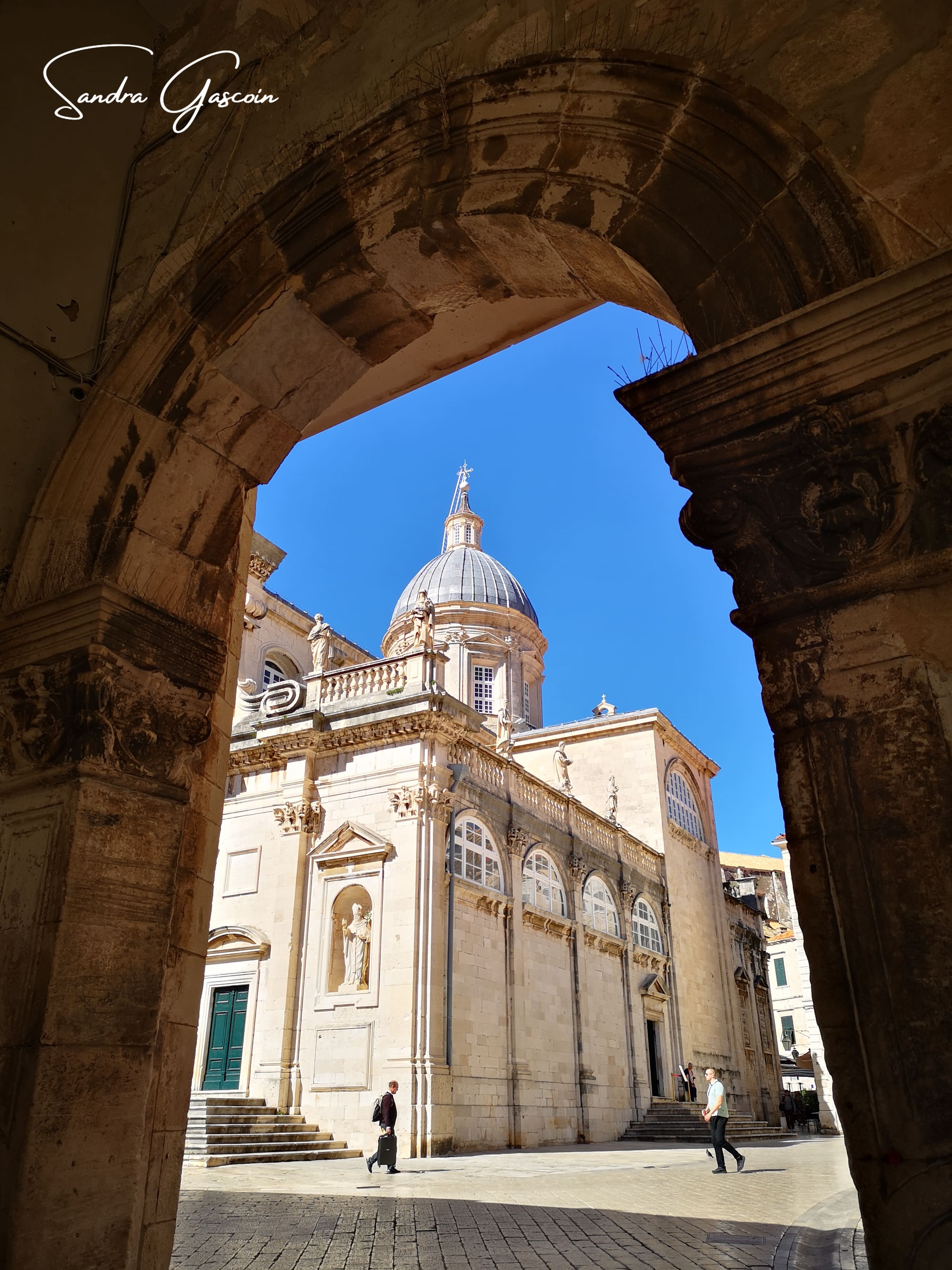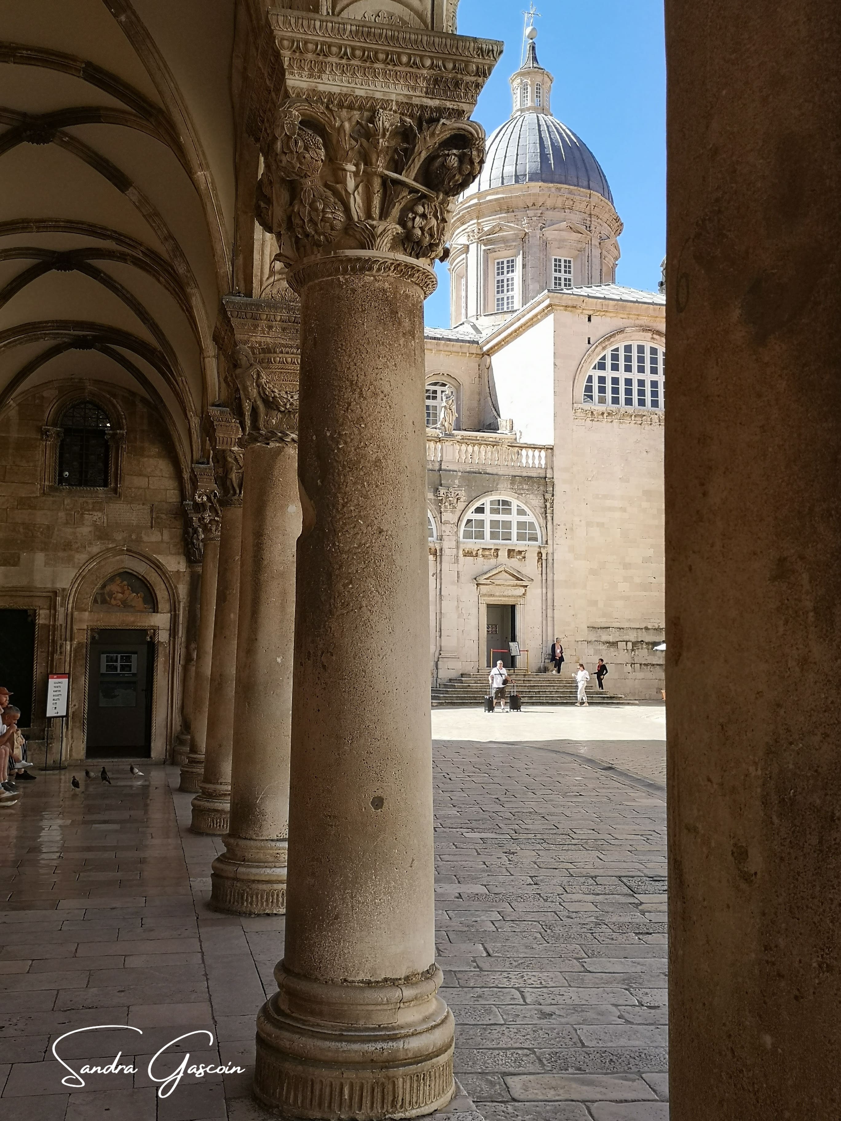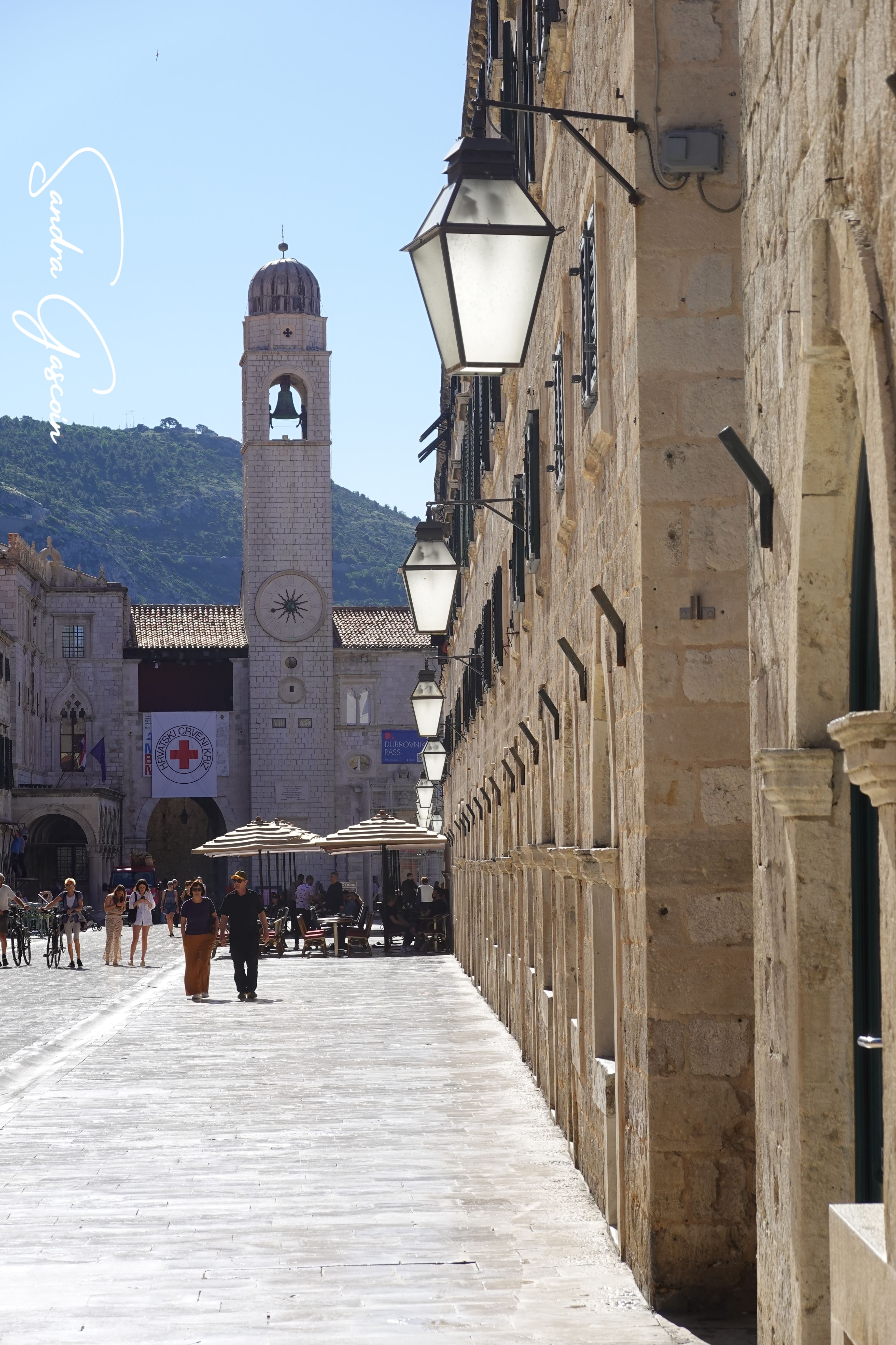 Avant de quitter la cité, alors que les rues s’animent, je fais une petite emplette dans un Studenac sur la place du marché déjà grouillante d’activité, je me prends un petit truc à la boulangerie et m’installe dans un endroit ombragé où je peux manger mon deuxième petit-déjeuner. Je m’assois sur une marche à l’entrée d’une boutique de souvenirs dédiée à Game of Thrones, la série ayant transformé Dubrovnik en lieu de pèlerinage pour fans. J’avais téléchargé sur internet tous les lieux de Stari Grad où des scènes de la série ont été tournées. J’ai complètement oublié de consulter mes captures d’écran lors de mes déambulations. Manifestement, je ne suis pas la plus fervente des admiratrices.