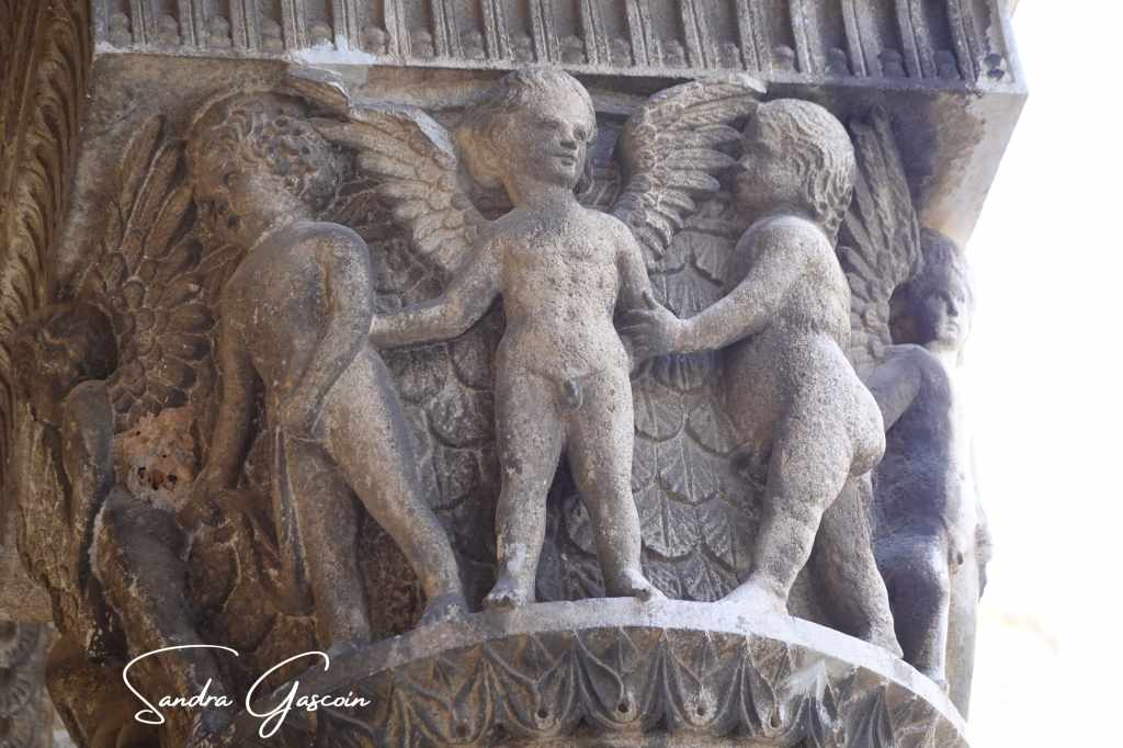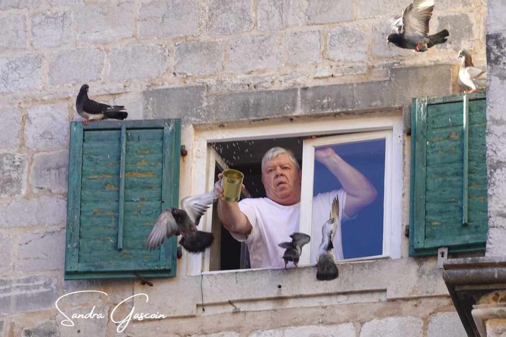 Devant la cathédrale, des piaillements captent mon attention : un ballet des hirondelles s’anime au-dessus de ma tête, chacune s’engouffrant à tour de rôle dans un nid savamment dissimulé derrière un chapiteau richement décoré. Des battements d’aile mêlés à des roucoulements me font lever les yeux : un homme ouvre les battants de sa fenêtre, une boîte de conserve à la main. Aussitôt, des pigeons, fins connaisseurs et habitués à ce qui paraît être un rituel quotidien, se posent sur les battants de la fenêtre, le rebord, et pour le plus téméraire (ou vorace) directement sur la boite. D’un geste familier, il disperse la nourriture dans le vide, déclenchant une valse frénétique de plumes grises et un concert de roucoulements de contentement. En contrebas, un chat tricolore observe la scène, indécis : doit-il bondir ou patienter que le festin s’achève ? Un couple de jeunes mariés s’approche et pose devant la cathédrale, baigné dans un rayon doré. Il est à peine sept heures, et le marié lutte déjà avec le voile de sa bien-aimée, suivant tant bien que mal les instructions du photographe. Je me promène dans le labyrinthe de ruelles, places et escaliers, savourant ce calme éphémère avant l’invasion touristique. Un détail me frappe : la prolifération des coffres à clé accrochés aux portes des maisons. La vieille ville semble désormais livrée aux locations saisonnières, vidant ses murs de toute véritable vie locale. Une question me traverse l’esprit : comment les voyageurs, traînant d’énormes valises, gravissent-ils ces interminables volées de marches ? Certes, quelques planches disposées çà et là aident les ouvriers à transporter leurs charges, mais pour les touristes non avertis, l’expérience doit être éprouvante.