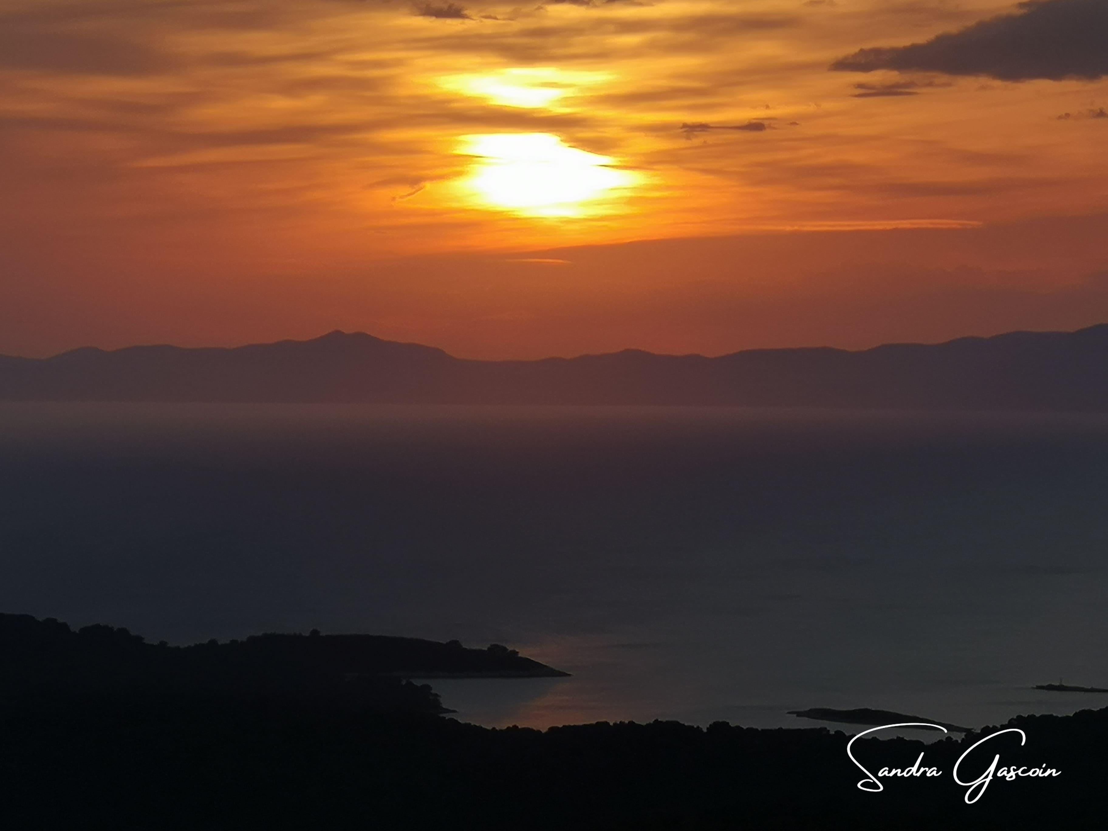 Pour l’instant, je me contente de remonter chercher mon équipement, resté caché derrière le tronc couché. À mon soulagement, rien n’a été dérangé. Au sommet de Montokuc, un pompier a pris le relais de sa collègue. J’étale mon pique-nique et savoure la vue plongeante sur l’île. Vers 19h30, il termine son service et redescend à vive allure vers Godaveri. Seule, j’admire le paysage au soleil couchant. Un touriste irlandais arrive et engage la conversation. Selon lui, à cette heure tardive, je pourrais planter ma tente n’importe où sans être inquiétée. Son avis me rassure un peu. Vers vingt heures, je quitte les hauteurs et prends la piste en sens inverse, en direction de la sortie. Une nouvelle fois, des chèvres sauvages détalent à mon approche. Finalement, je déniche un renfoncement le long de la piste où je peux établir mon bivouac. Ce n’est pas l’endroit idéal, mais le meilleur compromis en ces lieux. La nuit est tombée et je n’ai plus envie de marcher.