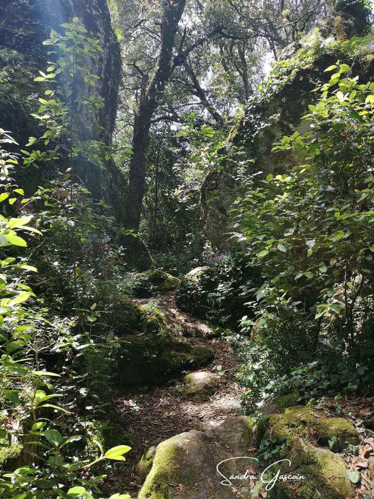 À dix heures, je récupère mon sac à l’auberge et entame l’ascension vers les hauteurs. Je me retrouve sous les pins dont les aiguilles tapissent la route en une épaisse couche souple. Je me demande si elles pourraient faire un bon combustible. Un homme les ramasse justement, son labeur s’annonce titanesque.