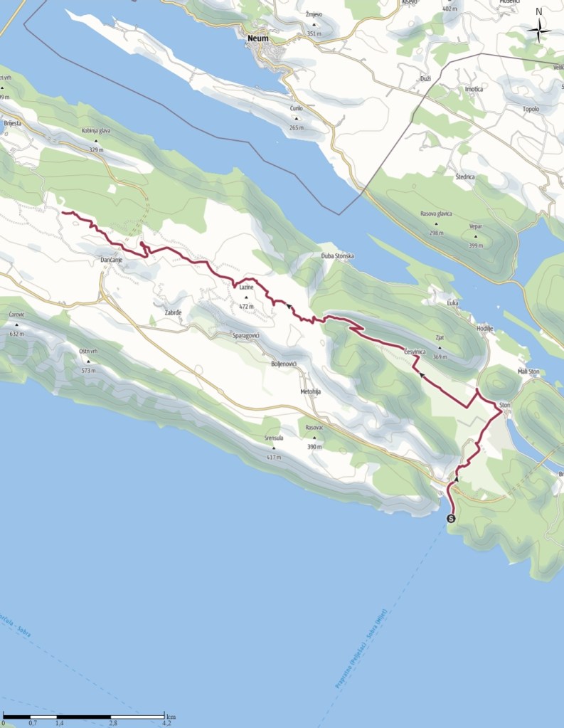 Je reprends la route et croise deux Français qui font du stop en espérant rejoindre un port d’où part une navette pour Dubrovnik. Arrivés en bus, ils cherchent un ferry plus au nord, ignorant que celui de Prapatno ne dessert que Mljet. Ils veulent rejoindre un ferry plus au nord. Nous avons le même objectif mais je n’y serai que le surlendemain. À ma grande honte, je leur indique de mauvaises indications n’ayant en tête que les chemins de randonnée et non les routes carrossables. J’espère qu’ils ne m’auront pas écoutée…