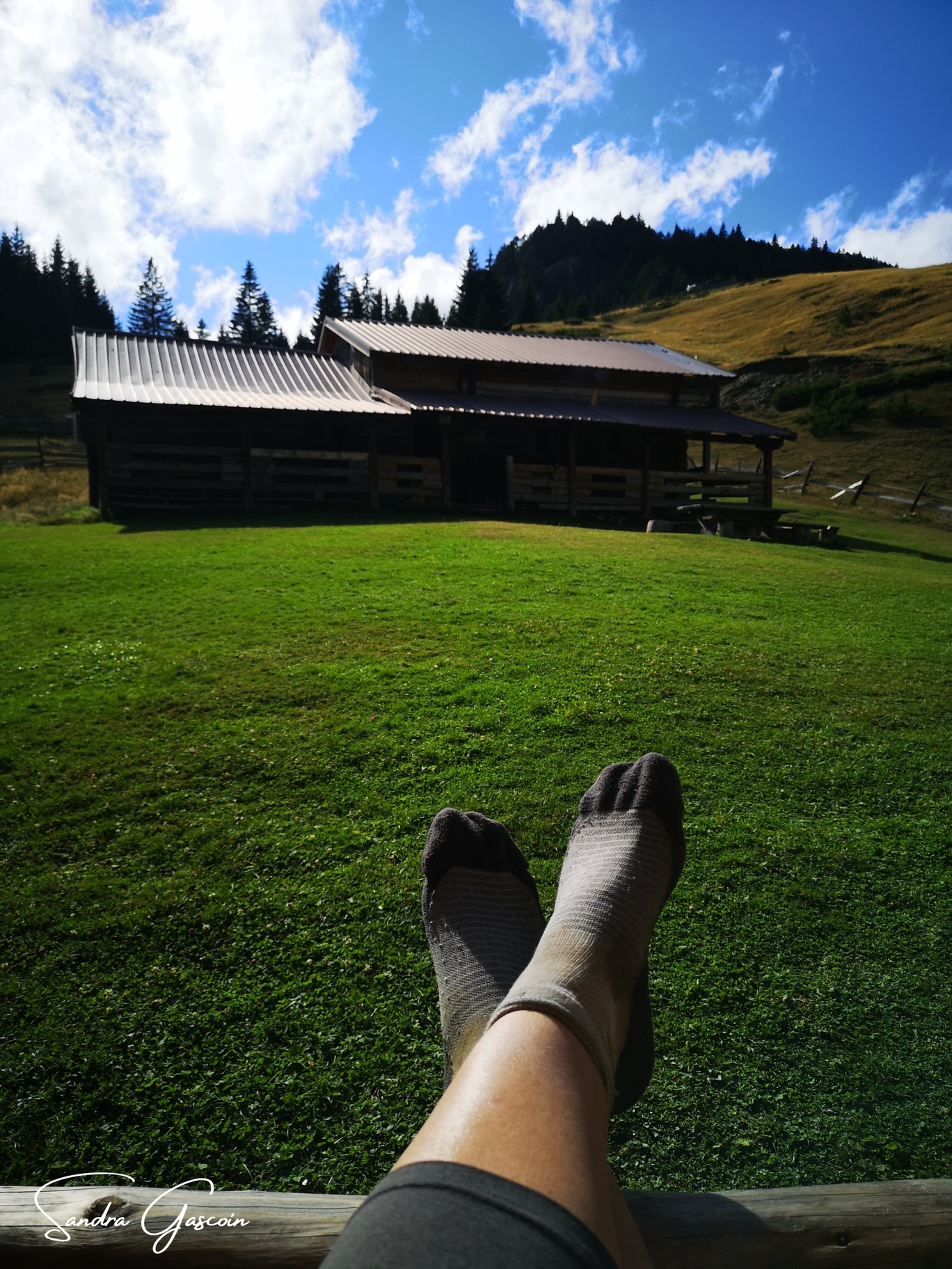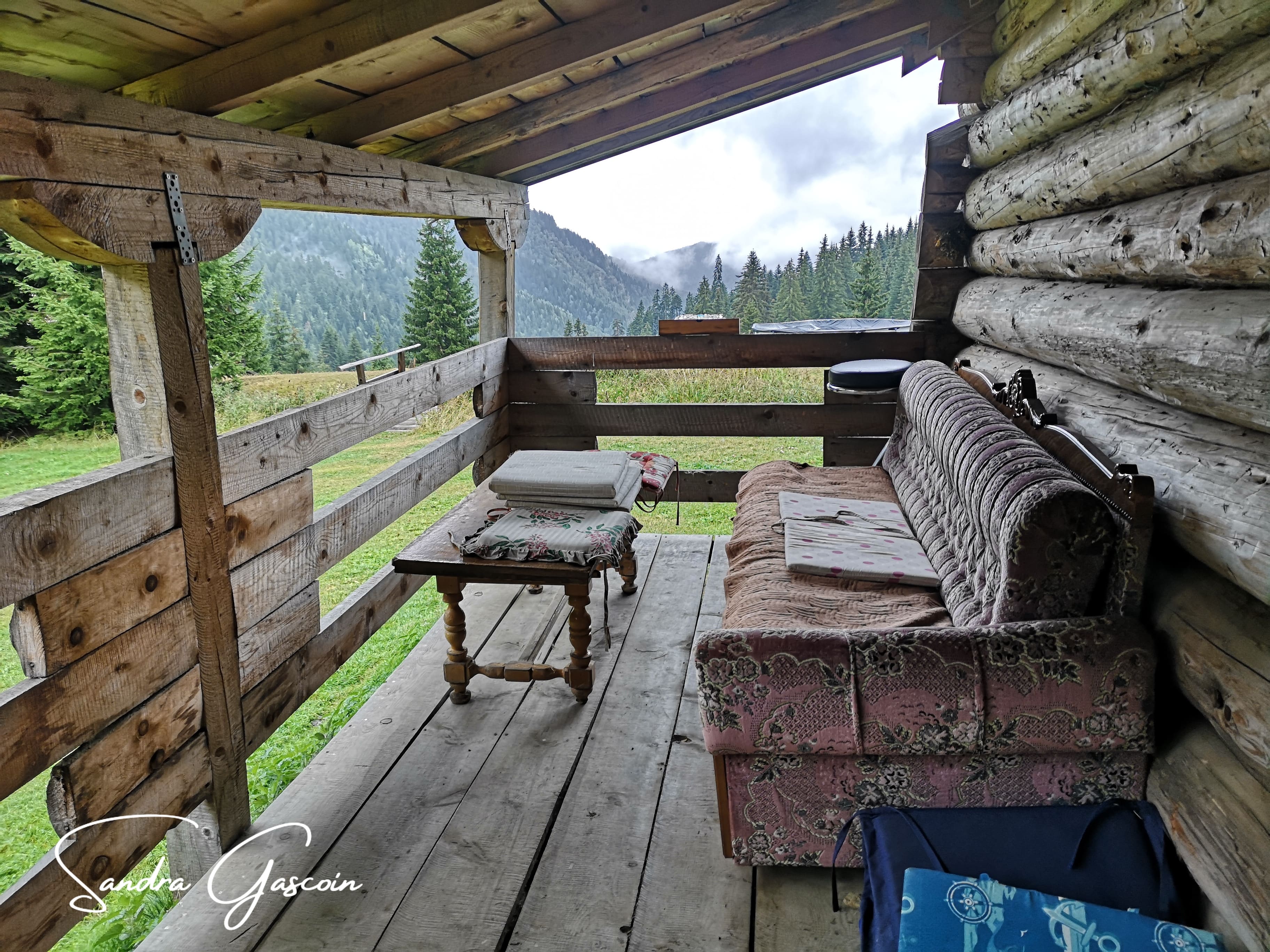 En fin de matinée, les nuages et la pluie écrasent toujours le paysage. Cela me conforte dans mon idée de prolonger mon séjour d’une nuit. Le couple rencontré la veille se prépare sous le porche pour poursuivre sous l’averse. Ils ont revêtu leur long poncho bleu qui recouvre également le sac à dos. Ainsi affublés, leur silhouette me rappelle celle des extraterrestres Mondoshawan à la démarche lourdaude et pesante dans le film « Le cinquième élément ». Ils ont enfilé des protections imperméables par-dessus leurs chaussures de randonnée. Produites en Chine et vendues à un coût dérisoire, elles sont peu pratiques à enfiler, menacent de déchirer quand ils passent le talon. Je les observe s’éloigner à l’unisson d’un pas décidé disparaissant derrière les arbres alors que je retourne vers la chaleur bienfaisante et réconfortante du salon. L’après-midi, le soleil chasse enfin les brumes, ravivant les couleurs d’un paysage détrempé. Je troque le poêle crépitant contre les rayons du soleil sur la terrasse. Le propriétaire m’a prié de changer de dortoir, il préfère me loger dans une cabane pour trois car un groupe s’est annoncé. Après avoir rassemblé toutes mes affaires et retiré les draps du lit, je procède au déménagement. Cette nuit sera plus fraiche car je ne profiterai plus de la chaleur du salon sous mon lit. Je gagne en tranquillité.