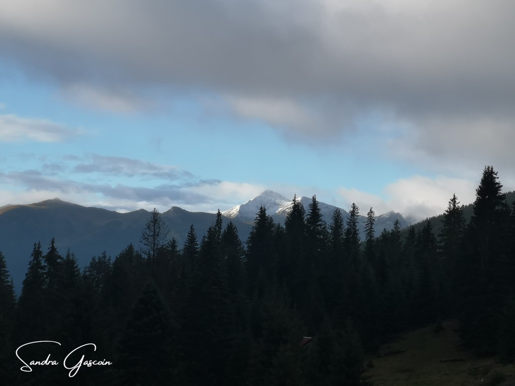 Les sommets sont saupoudrés de neige au petit matin, les températures ont bien chuté dans la nuit. S’extirper de dessous la couverture relève de l’exploit. Dans le réfectoire, je suis installée seule à une table. Je n’ai pas de contact avec les groupes de randonneurs, seulement avec les couples. Le contraste de mentalité entre les groupes guidés et les marcheurs autonomes est frappant. Je petit-déjeune donc dans mon coin.