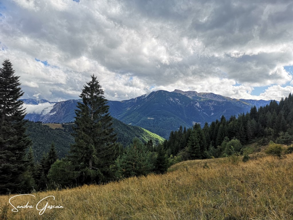 Préférant éviter la descente abrupte et périlleuse menant à la vallée suivante, j’opte pour la piste carrossée. Au hameau suivant, Milishevc, une surprise m’attend : je recroise le couple d’Autrichiens partis la veille sous la pluie battante. Ils m’expliquent, qu’ayant eu trop froid, ils ont fait demi-tour et trouvé une pension dans le village. À cause du mauvais temps en perspective, ils vont couper la boucle du Peaks of the Balkans et rejoindre directement Babino Polje en passant la variante surplombant Roshkodol.