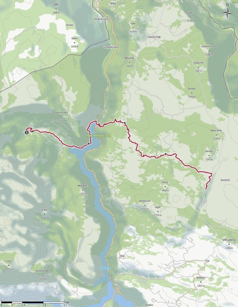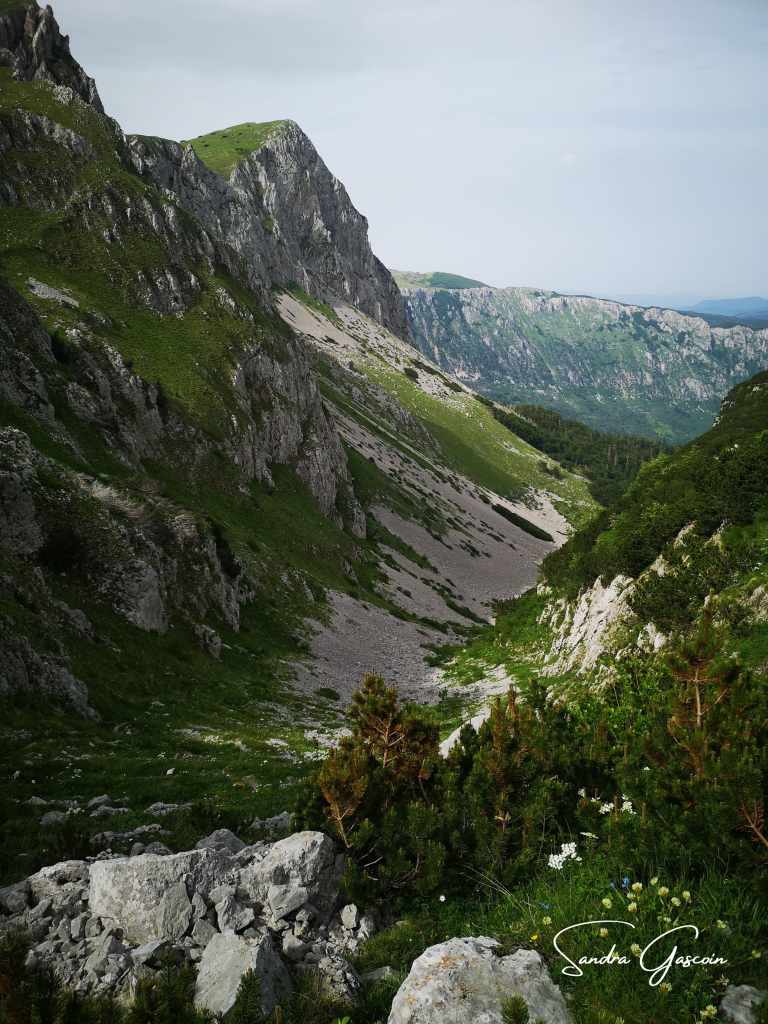 Quand j’arrive au sommet du col, je n’y crois pas moi-même. Pardonnez-moi l’expression, j’en ai vraiment « chié ». D’ailleurs, mon système digestif se rappelle à moi. Personne à droite, ni à gauche, je saute derrière un arbuste et soulage mon intestin. Cette expression imagée prend tout son sens ici ! Je vois encore des randonneurs descendre du Maglić. Combien en ai-je croisés aujourd’hui ? Une centaine ? Ma route me mène heureusement dans la direction opposée, vers la rivière Piva. Mon point de chute pour la nuit est à environ six kilomètres de ma position actuelle. Ça devrait aller vite : mon application calme mon optimisme instantanément. Elle m’annonce trois heures et plus de mille mètres de dénivelé négatif !!