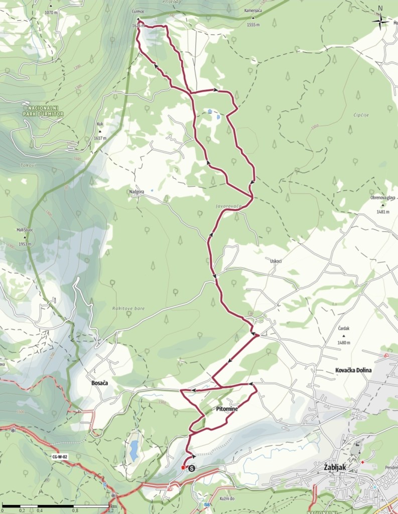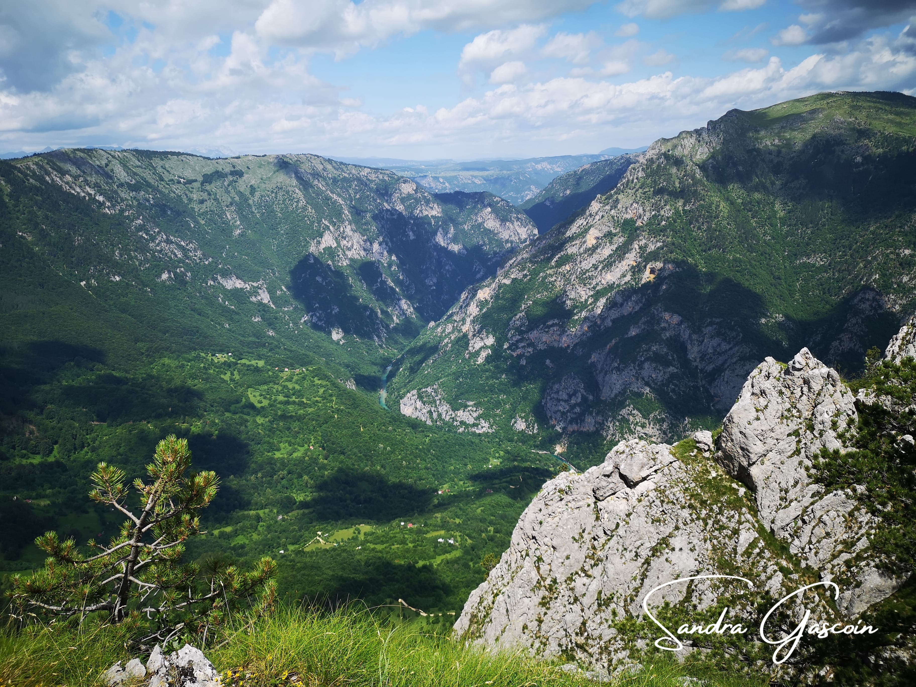 J’avais espéré que le ciel soit plus dégagé à mon réveil. La déception est grande. Faute de pouvoir m’élancer vers le plus haut sommet du Durmitor, je programme la découverte du canyon de la Tara, avec ses 1333 mètres de profondeurs, un des plus profonds du monde après le grand canyon aux États-Unis. Le couple de Français a réservé une sortie rafting, la météo et le prix me rebutent de les y accompagner. J’irai tranquillement à pied après le petit-déjeuner. Je me prépare un casse-croûte et pars pour la première fois sans mes bâtons et le poids de mon sac à dos qui alourdit mes pas. La marche est inhabituelle, une sensation de déséquilibre accompagne les premières centaines de mètres avant que mon corps ne s’adapte à sa légèreté retrouvée.