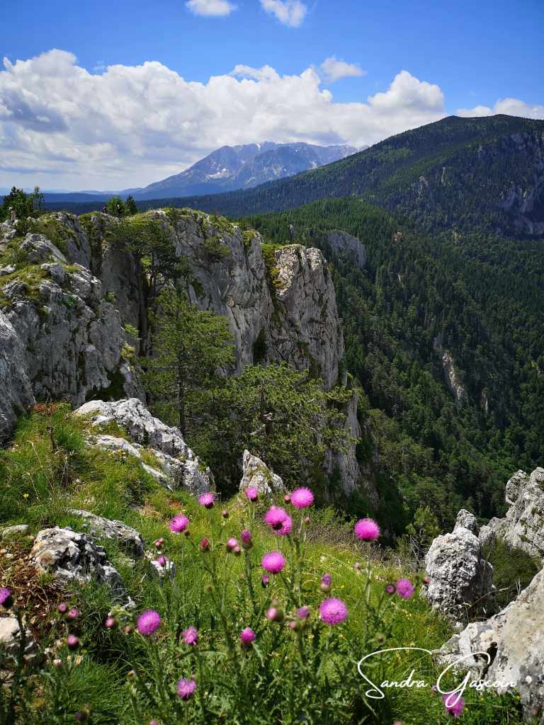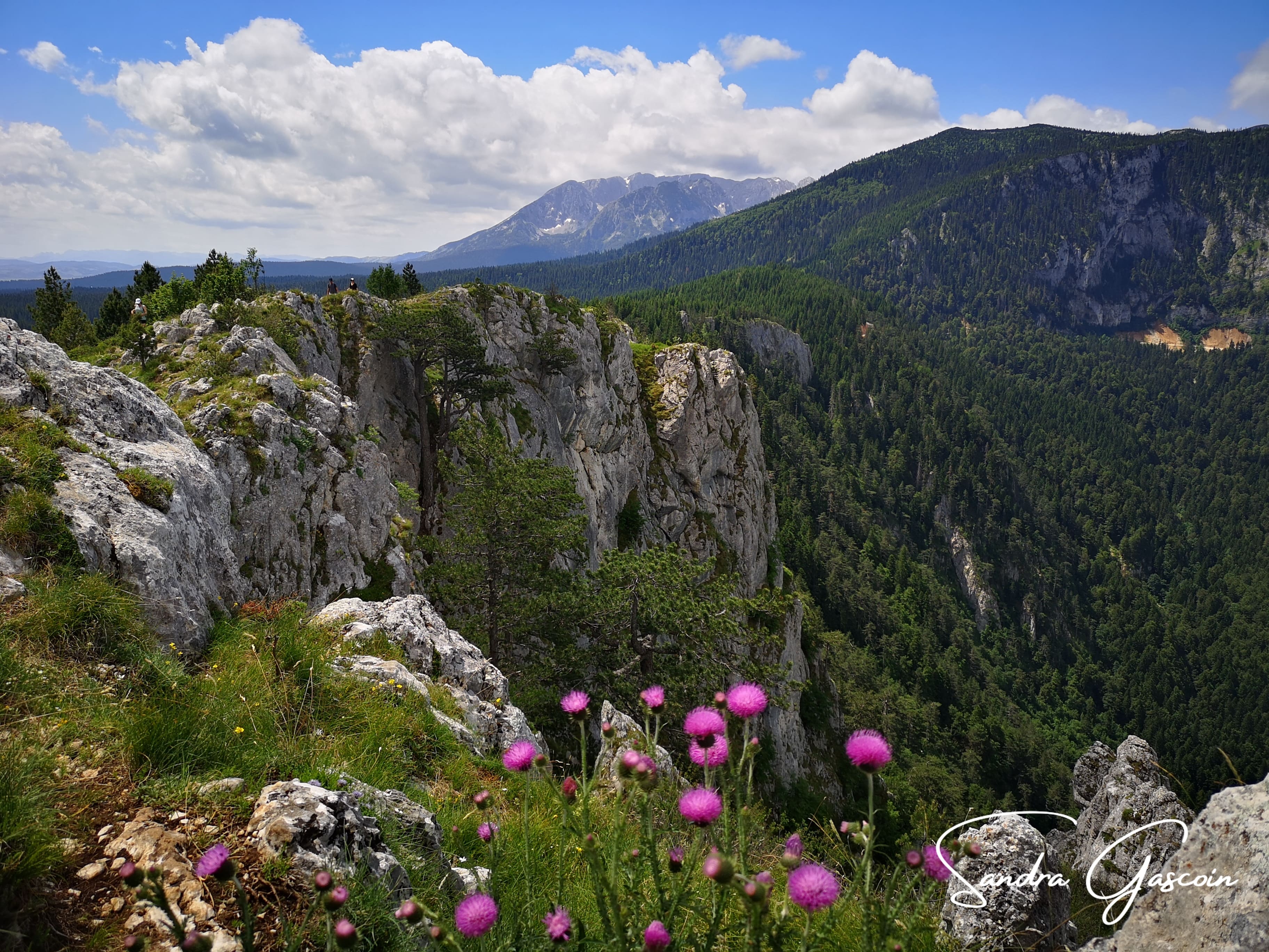 Le sommet Ćurevac offre un point de vue sur les gorges de la Tara. Tout en bas, je devine le cours de la rivière aux eaux cristallines, d’un bleu éclatant. Les flancs escarpés sont recouverts d’une forêt primaire de conifères, l’une des rares encore préservées en Europe. Les arbres peuvent atteindre les cinquante mètres et vivre jusqu’à 450 ans ! Malgré le vent qui balaie le point de vue, je pique-nique face à ce panorama fascinant, impressionnée par la puissance tranquille de la nature qui a creusé cette gorge pendant des millions d’années. En contre-bas, sur des versants adoucis, des fermes et habitations émergent çà et là de la mer verte des sapins. Je cherche en vain un sentier qui longerait la rivière par en bas ou par en haut. Je dois me contenter d’être spectatrice du haut de mon promontoire.