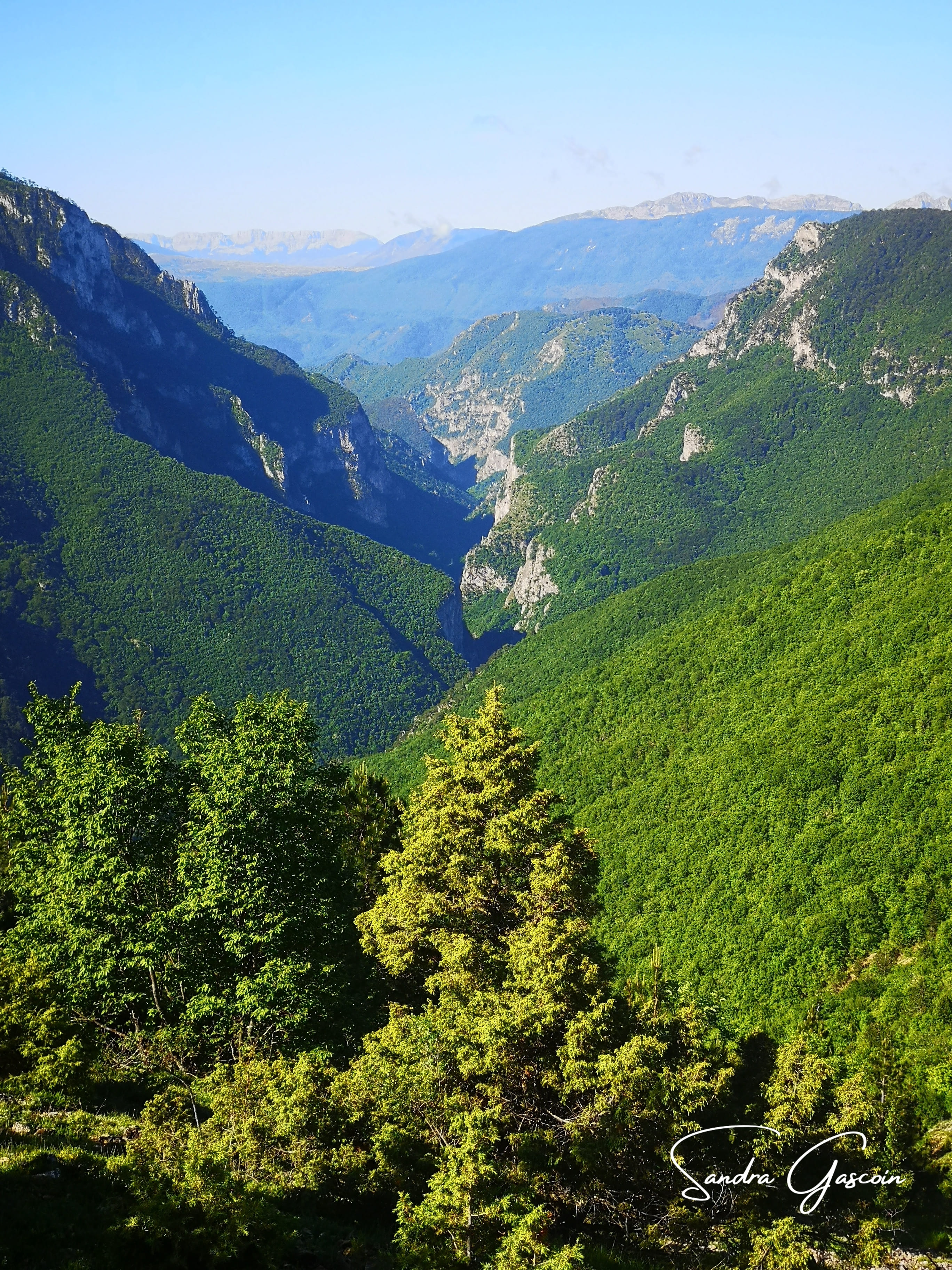 Le soleil règne en maître dans le ciel bleu clair. Ses rayons caressent ma tente, qui va sécher en un rien de temps. Je sors prestement pour étendre quelques vêtements aux poteaux de la clôture. Personne en vue ? Sans hésitation, je franchis le grillage effondré et, discrètement, je soulage ma vessie à l’extérieur de cet espace sacré. Mieux vaut éviter toute accusation de sacrilège. Je prends mon temps pour le petit-déjeuner et ne quitte les lieux que vers huit heures et demie. La vue sur le canyon de Rakitnica et le massif du Prenj derrière est impressionnante. Si seulement chaque journée pouvait être aussi radieuse !
