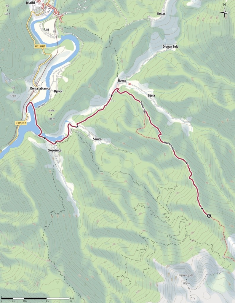 Il me reste quatre kilomètres pour rallier la route nationale où j’espère chopper un bus vers Mostar ou me fier au hasard du stop. Dans le fond de la vallée, la promenade est reposante. Au hameau suivant (Glogošnica), un panneau mentionne le refuge que j’espérais atteindre. Il existe donc un autre chemin, peut-être plus facile. Quelques jours plus tard, une randonneuse néerlandaise me confirmera que ce sentier est préféré par les randonneurs de la Via Dinarica, une information relayée sur Facebook… réseau auquel je n’ai ni accès ni appartenance. De toute manière, cela n’aurait rien changé à la météo capricieuse. Le problème en altitude aurait été le même, peu importe le chemin emprunté.