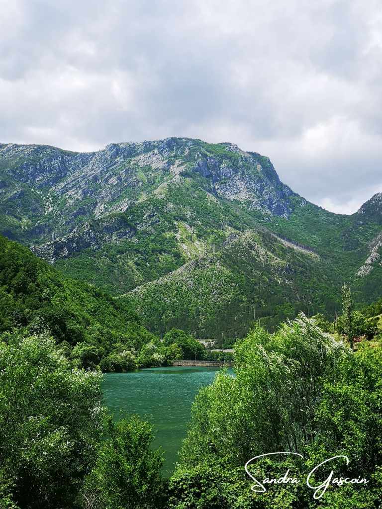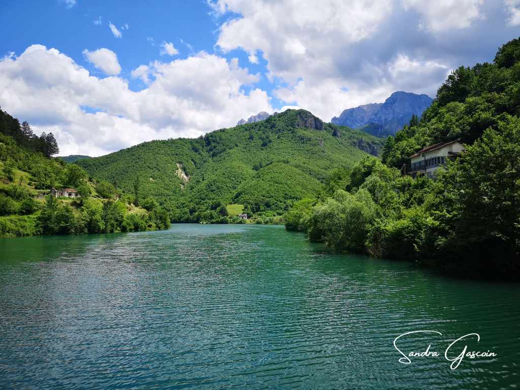 J’atteins enfin la Neretva, dont les eaux gonflées par la Glogošnica et le barrage en aval prennent une teinte bleu-vert hypnotique qui donne envie de s’y baigner. Sur les rives sont déployées des structures flottantes, vraisemblablement pour de la pisciculture. Je trouve un restaurant avec une connexion internet, des toilettes en extérieur que je m’empresse de visiter. Je décide de m’accorder une pause et un remontant : deux boules de glace au chocolat et un Orangina ! J’en profite également pour recharger les batteries. Cela pourrait être plaisant si les gens autour ne fumaient pas. Je ne m’y ferai pas. Entre deux bouchées goulues de glace, je donne de mes nouvelles à mes proches. Ils n’ont pas eu le temps de s’inquiéter, ne sachant pas ma situation là-haut mais je préfère expliquer mon parcours pour les prochains jours au cas où.