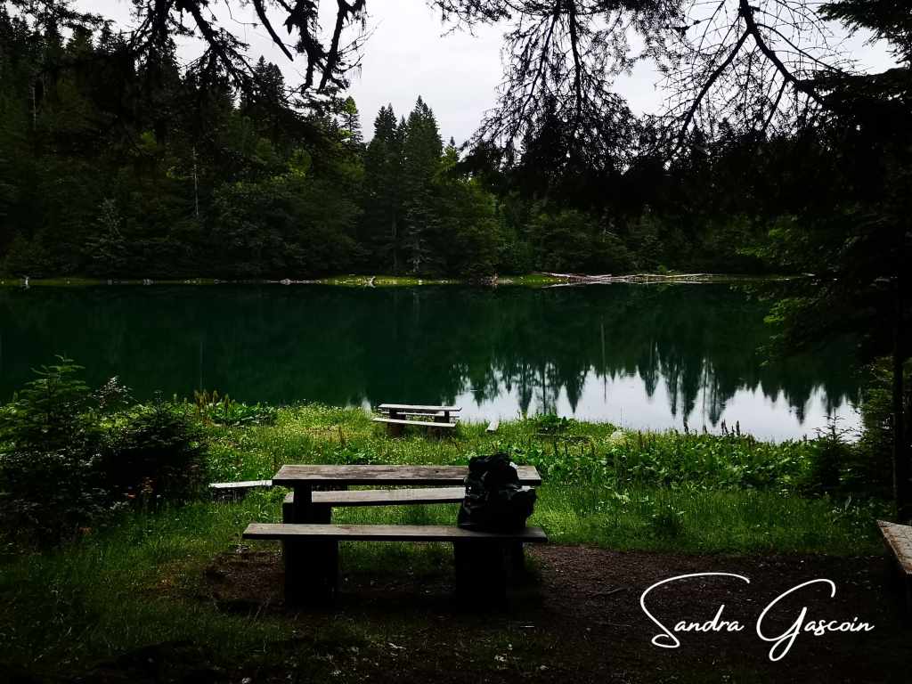 J’arrive à vingt heures passées au lac. L’aire de bivouac est située en retrait de l’eau, sous les arbres et sur un beau sol sec et confortable. Je vais ensuite remplir mes bouteilles directement sur les berges. Je ne me sens pas de chercher la source qui alimente ce lac. Je me prépare un thé puis un repas chaud. La nuit enveloppe peu à peu le paysage. L’air se rafraîchit, les moustiques s’invitent, me chatouillent les mollets, et la symphonie discrète de la nature m’apaise. Après trente-cinq kilomètres d’efforts, je sais que mon sommeil sera réparateur. Cette nuit, ce petit coin de paradis n’appartient entièrement. Une douce satisfaction m’envahit, et, bercée par la quiétude des lieux, je me laisse enfin happer par la nuit.