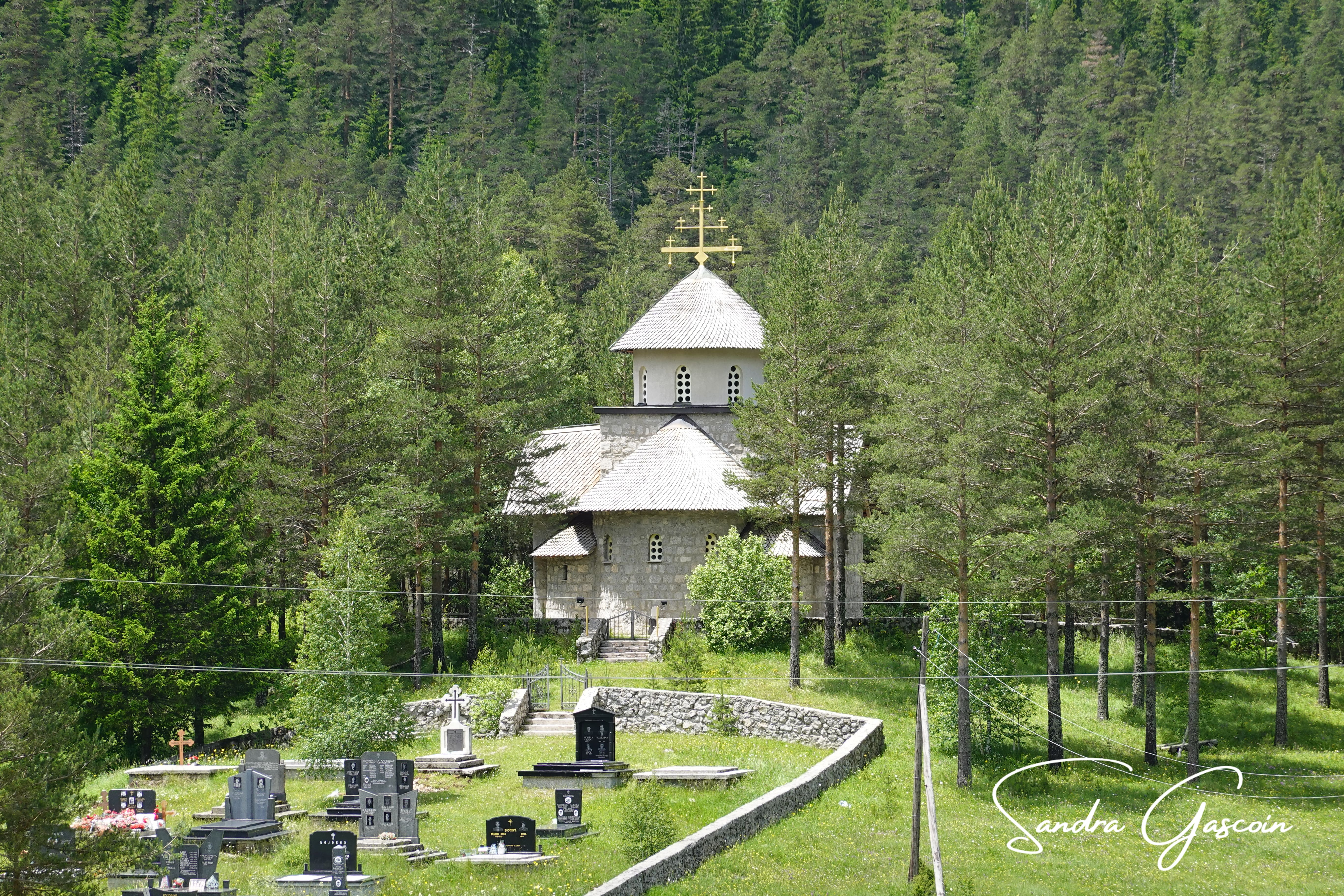Il pluviote ce matin lorsque je replie ma tente. Je prends donc le petit déjeuner au chaud dans la pièce commune que j’ai découverte la veille. Comme à mon habitude, j’en profite pour recharger mes appareils électroniques, une routine désormais bien rodée. Une femme me rejoint, elle me demande si on ne s’est pas déjà vues. Surprise, je reste bouche bée. Sans son chapeau de randonneuse, je ne l’ai pas reconnue. Il s’agit de la femme du couple canado-bosniaque que j’avais rencontré lors de l’ascension du Bregoć dans le massif du Zelengora dans le parc national Sutjeska en Bosnie. Nous nous étions revus le lendemain, au pied du monument de Tjentište. Je ne m’y attendais pas. Elle m’évoque avec enthousiasme leur récente randonnée dans le parc du Durmitor au cours de laquelle ils ont pu observer moults chamois, mais surtout leur projet audacieux : un tour du monde de quatre ans, débutant par l’Afrique ! Peu après, son mari nous rejoint, et nous poursuivons notre conversation en français, ce qui, à mon grand soulagement, facilite les échanges.