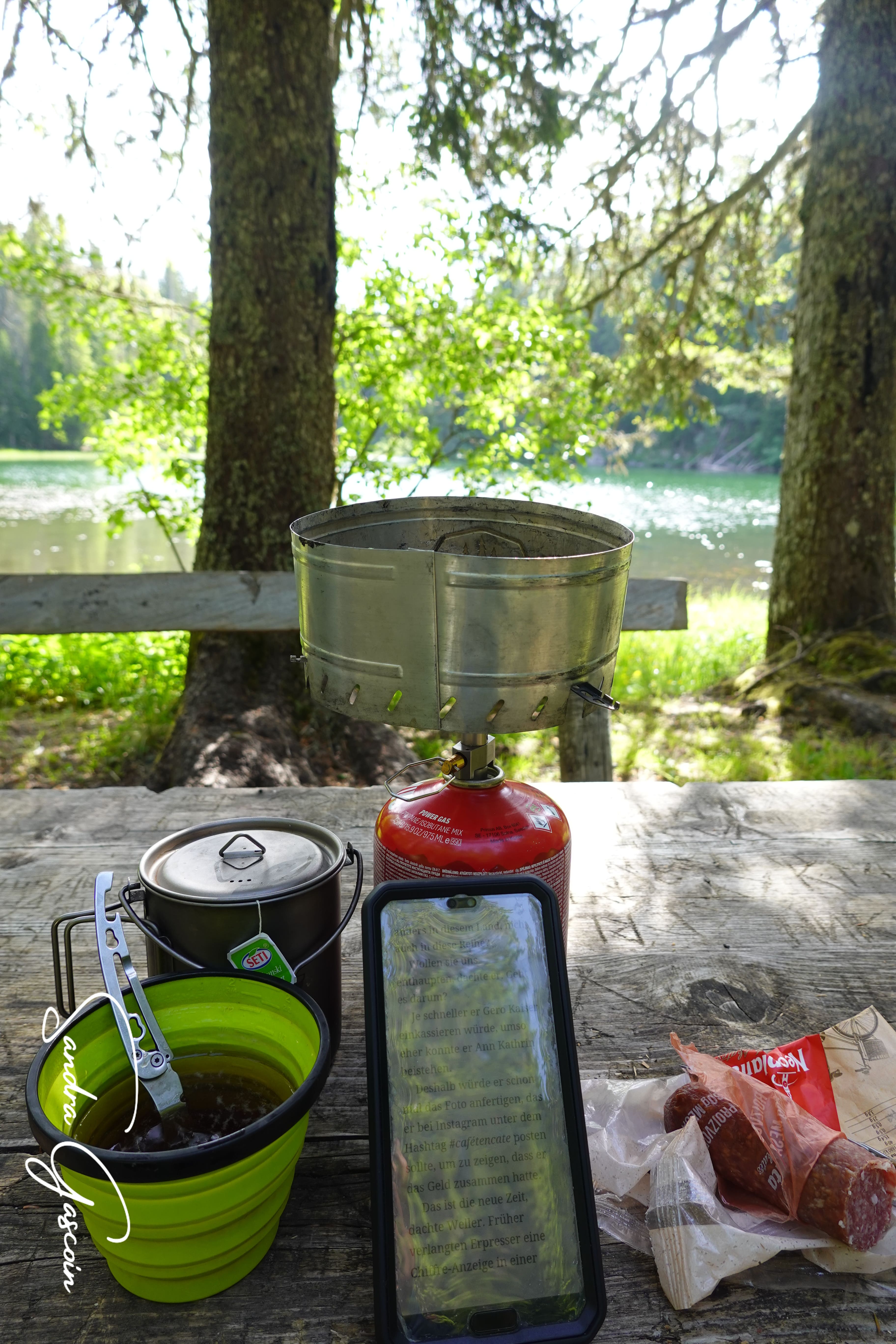 Face au lac et à la silhouette imposante du mont Meðed, un restaurant me procure le réconfort d’un véritable repas. Attablée en terrasse, je profite des rayons du soleil qui percent la masse de nuages de plus en plus menaçants. Les prévisions météorologiques ne s’annoncent guère clémentes pour les jours à venir.