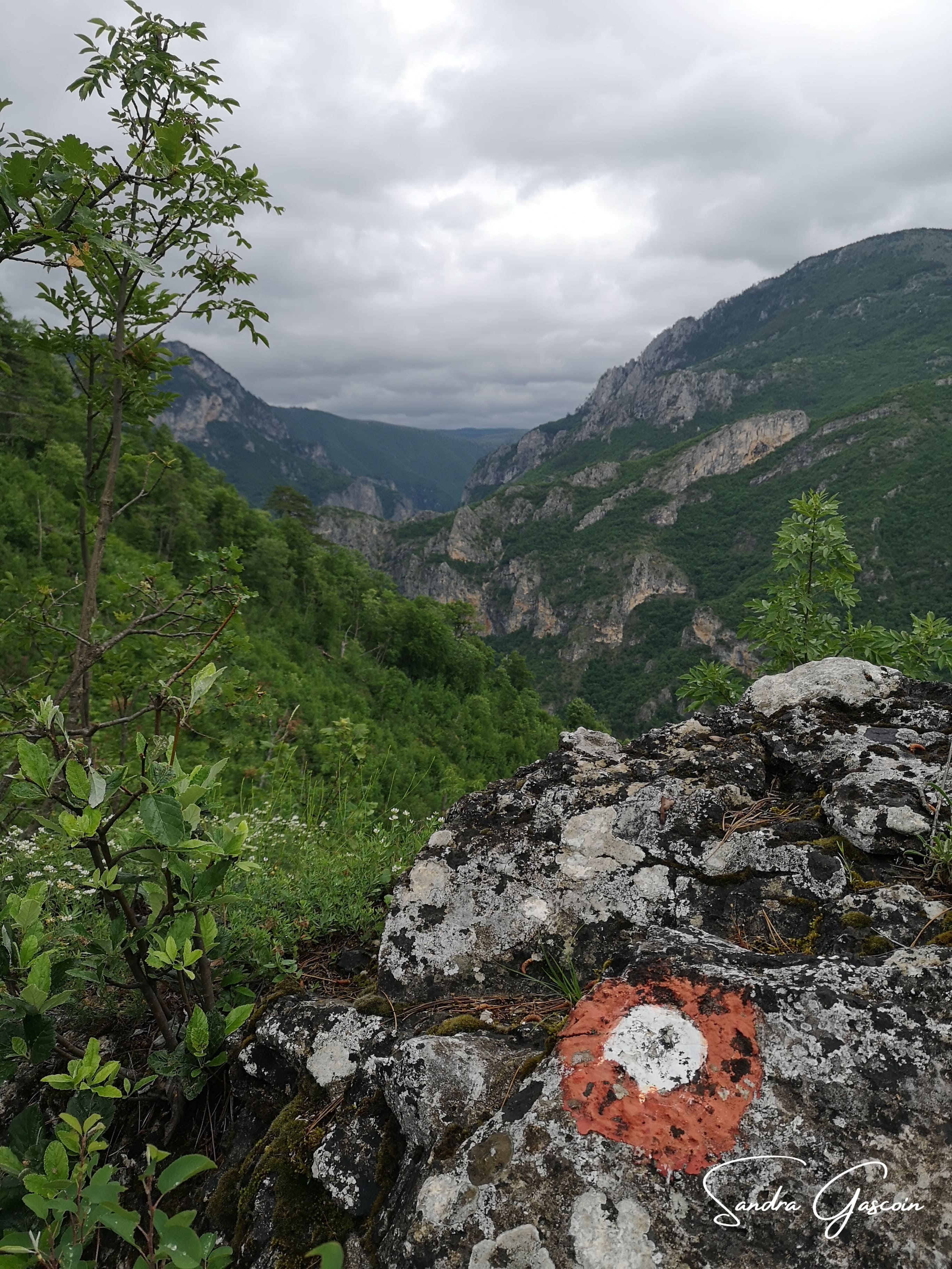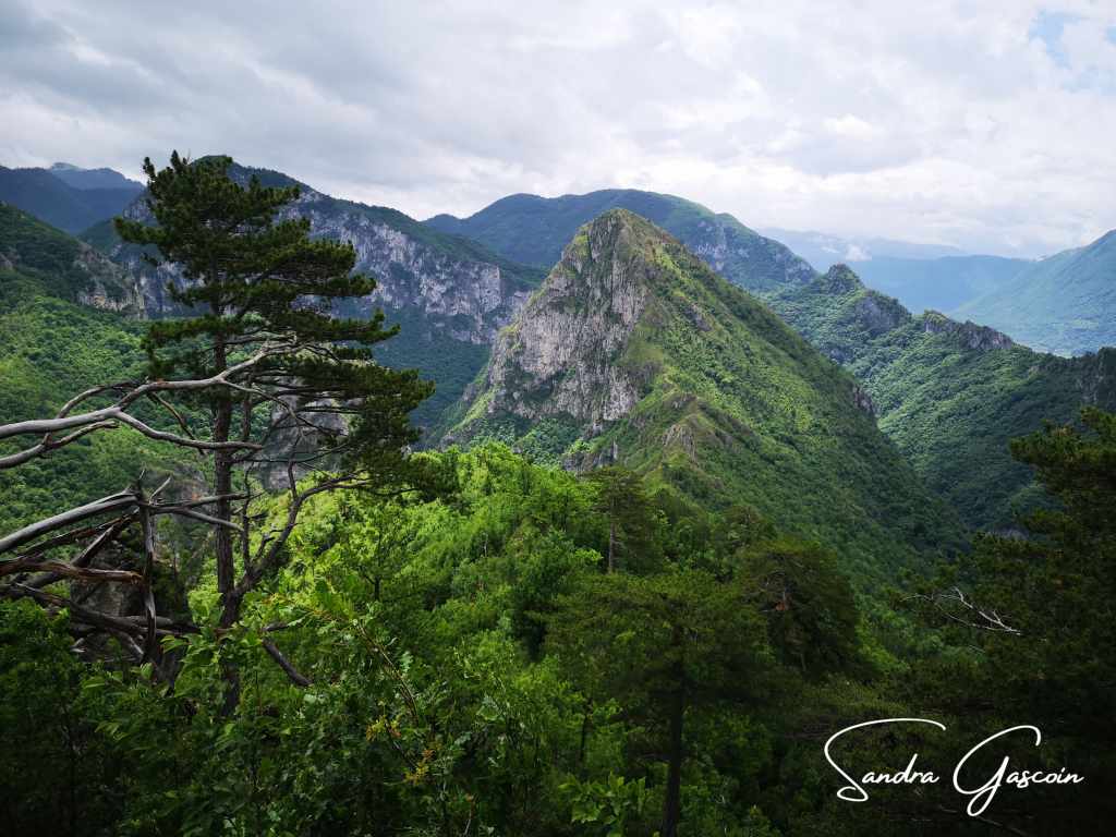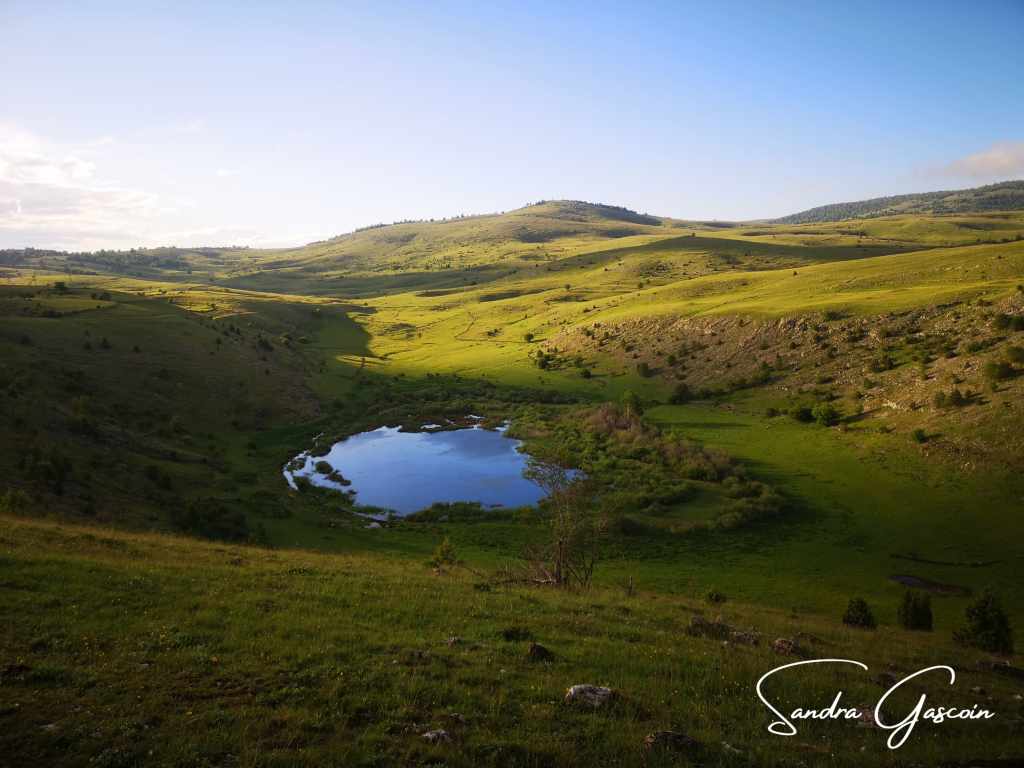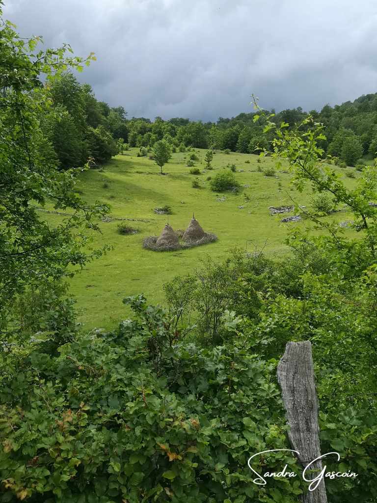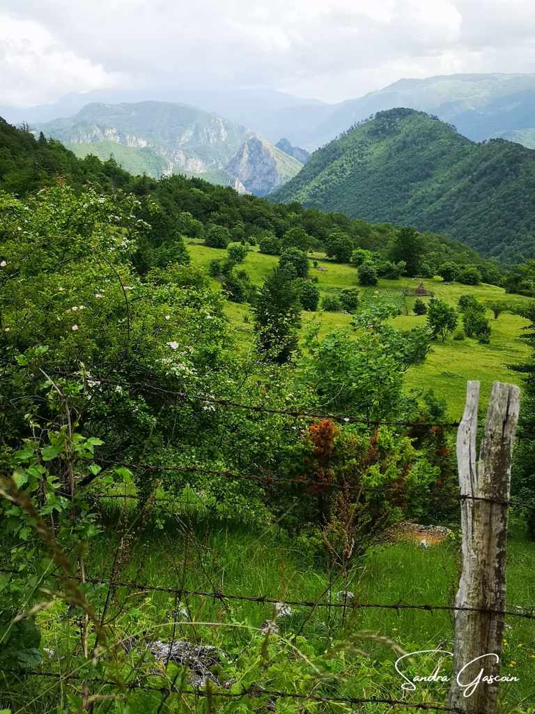 Je remonte au-dessus de Dubočani, la piste est belle et facile. Je cherche une source d’eau, il n’y a rien par ici. Je déniche une citerne enterrée dans un jardin d’une cabane déserte. Je n’arrive pas à l’ouvrir. Je repars bredouille. Ça va devenir problématique. Je compte sur le village de Blace pour me ravitailler avant la nuit. Pour y aller, la Via Dinarica quitte la piste et bifurque vers le Vranske Stijene (1299m) longeant la crête au-dessus de la gorge de la Rakitnica. Je peux aussi tout simplement poursuivre sur la piste. S’il se met à pleuvoir ou faire de l’orage, je pourrais peut-être rejoindre une ferme et m’y abriter. Si je marche sur la crête, ce sera « marche ou crève ». C’est sur la piste que je rencontre la première randonneuse du trail. Elle est néerlandaise et randonne également toute seule. Elle a commencé en Albanie trois semaines plus tôt. Nous échangeons quelques informations sur le parcours qui nous attend. Elle me rassure en me disant que la météo devrait rester clémente. J’aimerais pouvoir partager son optimisme ! Elle a préféré éviter le détour par la crête. Au bout de dix minutes, nous poursuivons chacune dans la direction opposée.