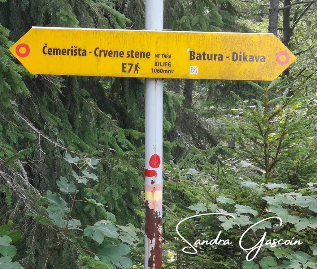 Au col Cemerista, le brouillard épais se dissipe en quelques secondes. Je m’engage sur le sentier européen de grande randonnée E7 qui parcours une bonne partie de la Serbie. S’étirant sur près de 6.460 km, il traverse le Portugal, l’Espagne, Andorre, la France, l’Italie, la Slovénie, la Hongrie et enfin la Serbie. Il s’agit d’une piste forestière bien entretenue. Je n’y rencontre que des chevreuils méfiants détalant vite sur les flancs boisés de la montagne à mon approche.