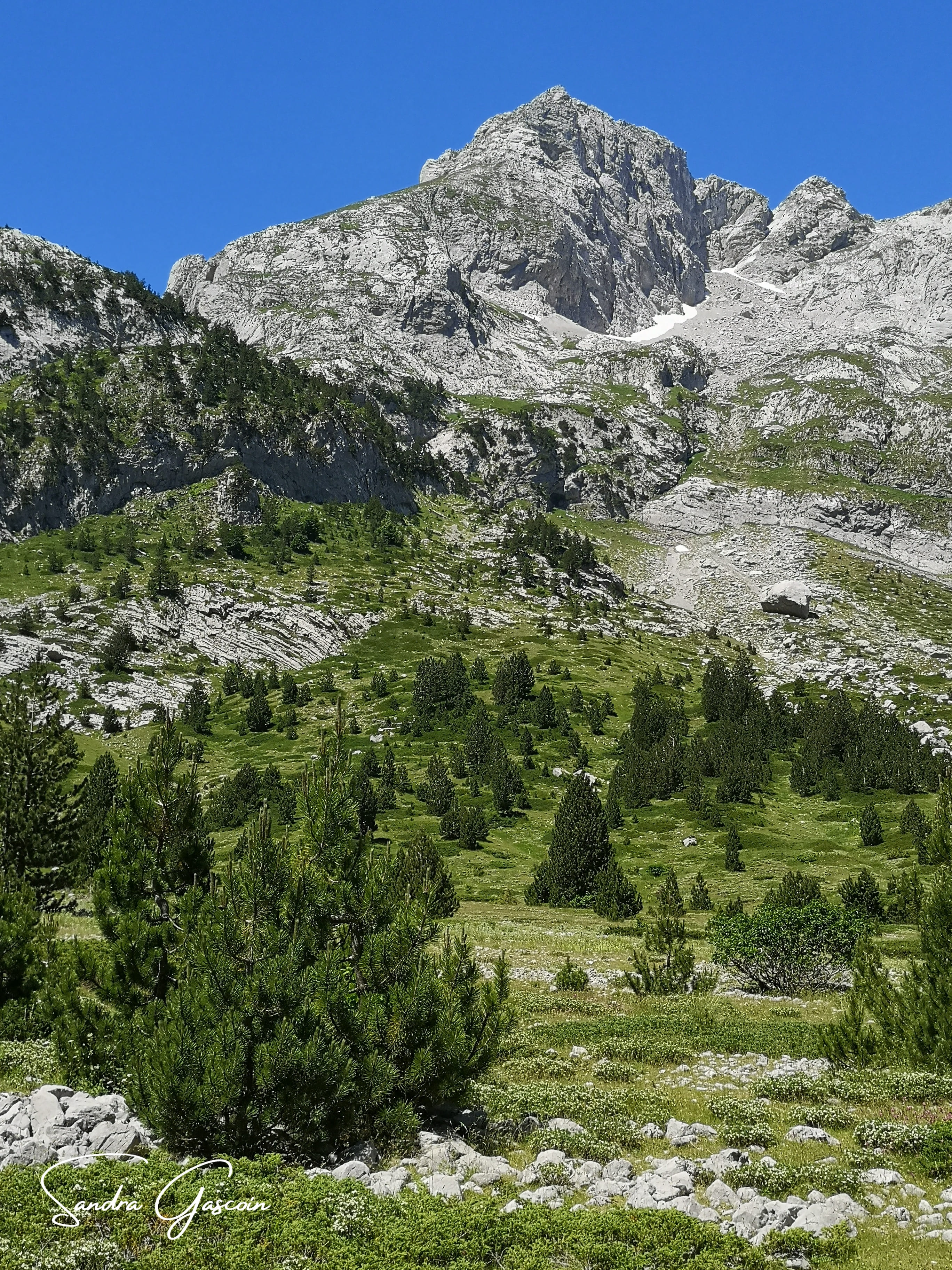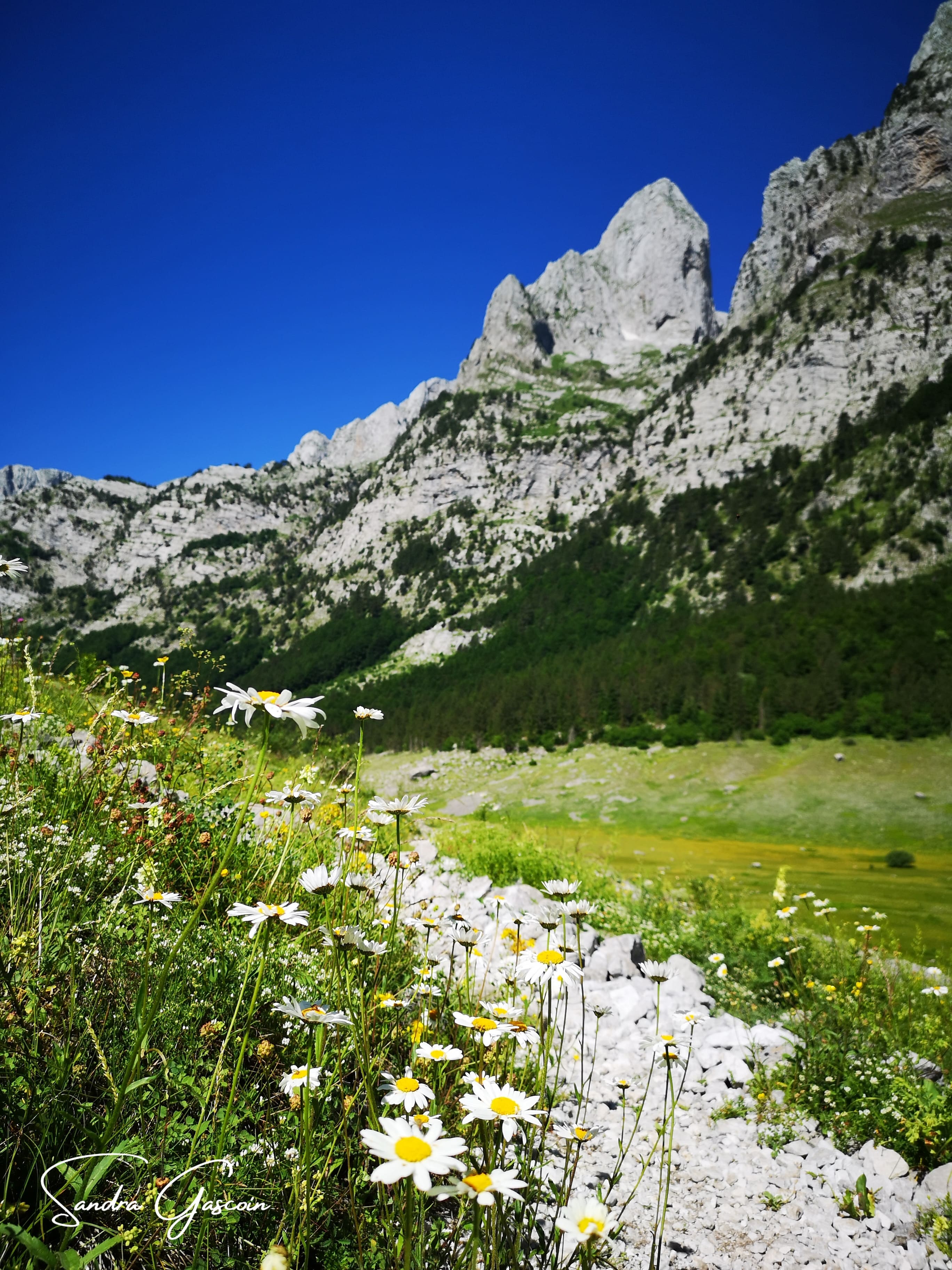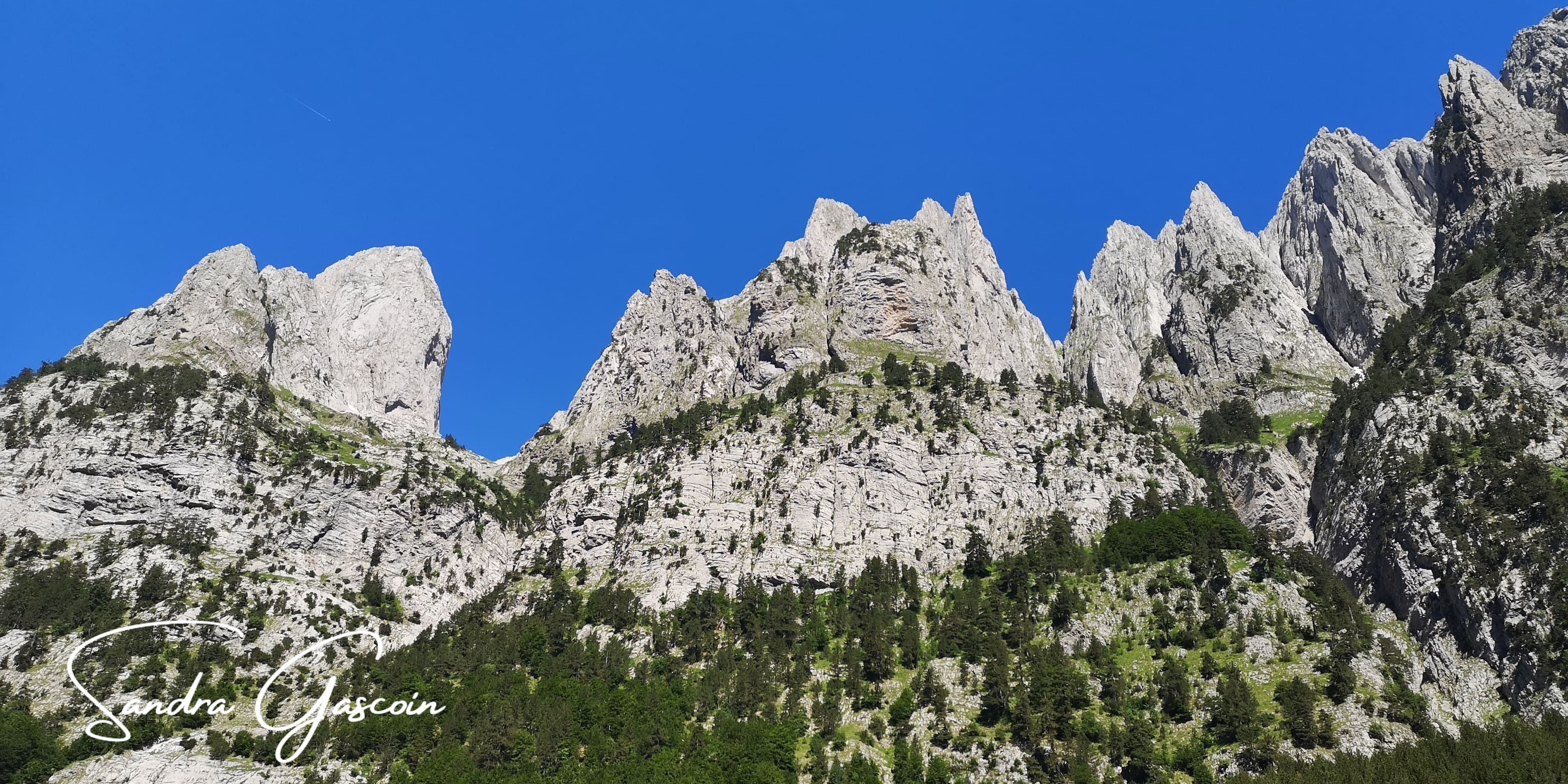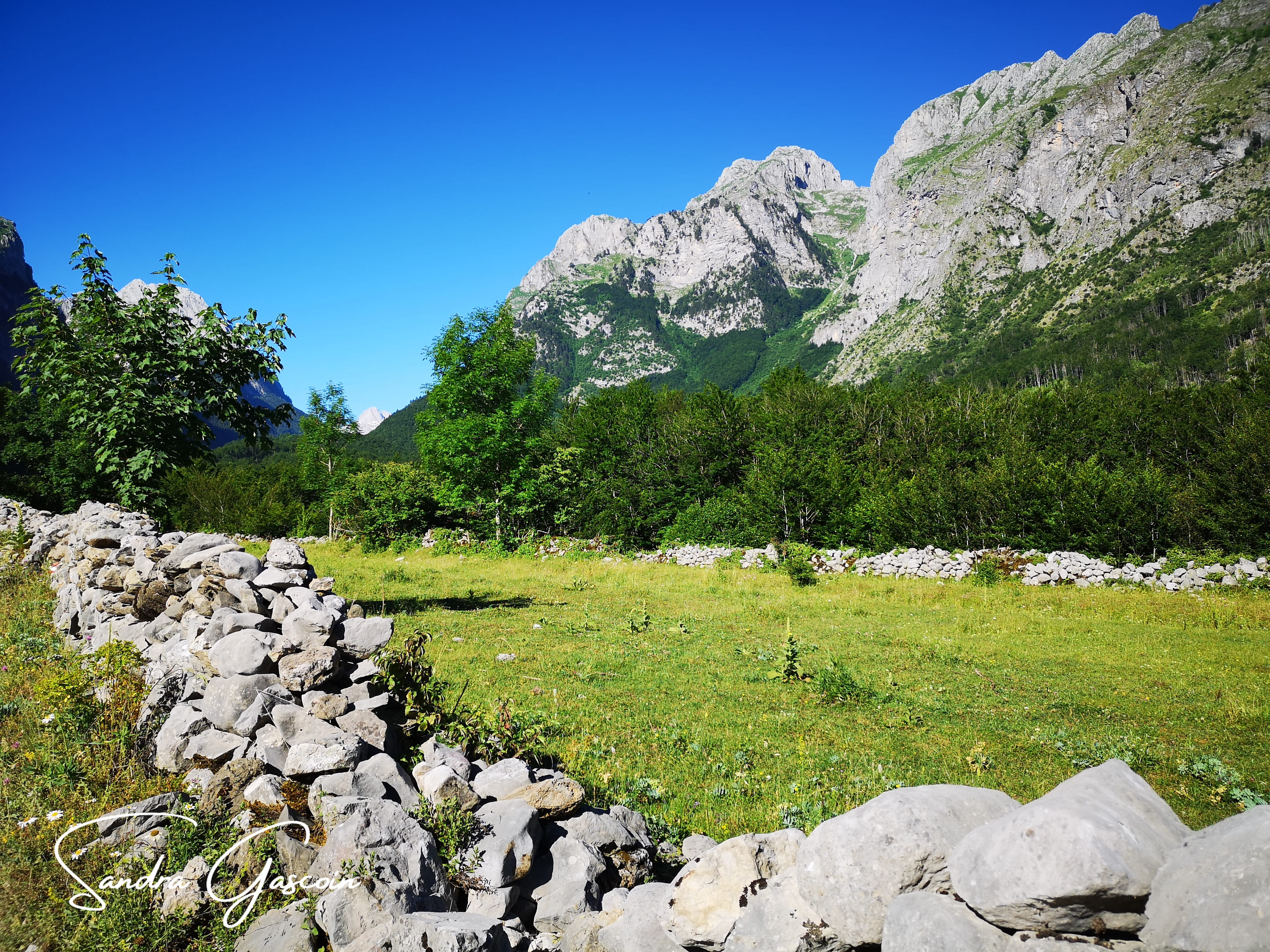 Deux jeunes femmes passent à proximité mais s’égarent bientôt contre une falaise. Se rendant compte de leur erreur, elles rebroussent chemin. Leur méprise me met sur la piste d’une source d’eau providentielle, dissimulée à quelques pas du sentier. Je m’y abreuve avidement et remplis mes bouteilles en prévision de l’ascension du col de Qafa e Pejës (1 742 mètres). L’émerveillement m’accompagne à chaque pas dans ce décor grandiose où mon appareil photo est sollicité en permanence. Sans la contrainte de l’eau, l’idée de bivouaquer dans ces montagnes m’aurait séduite. Des casemates circulaires, vestiges d’un autre temps, se fondent dans les rochers, veillant sur la vallée comme des sentinelles silencieuses et rappelent que la frontière albanaise est désormais franchie.