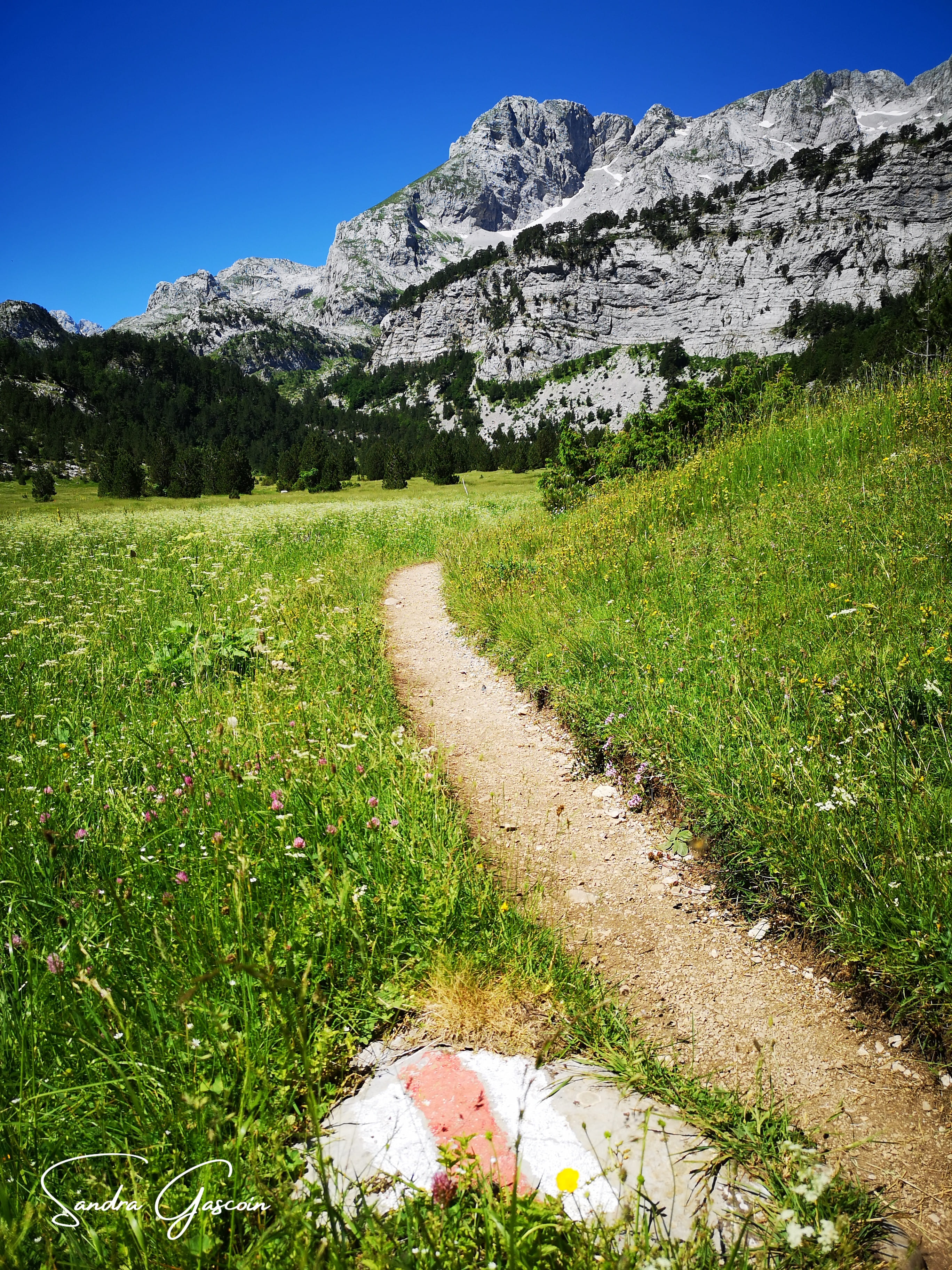 Levée aux aurores, je reprends possession de l’abri touristique occupé la veille pour y prendre mon petit-déjeuner. Cette ultime étape de la Via Dinarica s’annonce ambitieuse. Aujourd’hui, je quitte définitivement le Monténégro pour rejoindre la vallée de Theth, point de départ initial de mon périple. L’excitation de fouler enfin cette partie des Alpes albanaises cède bientôt la place à la stupeur face à un flot toujours grandissant de randonneurs convergeant vers les sommets du Prokletije. Interdite, j’observe cette procession où des dizaines de marcheurs, semblables à des lemmings, suivent un même itinéraire—le mien. Aucun d’eux ne semble arpenter la Via Dinarica ; ils effectuent le tour des Pics des Balkans, une boucle traversant l’Albanie, le Kosovo et le Monténégro.