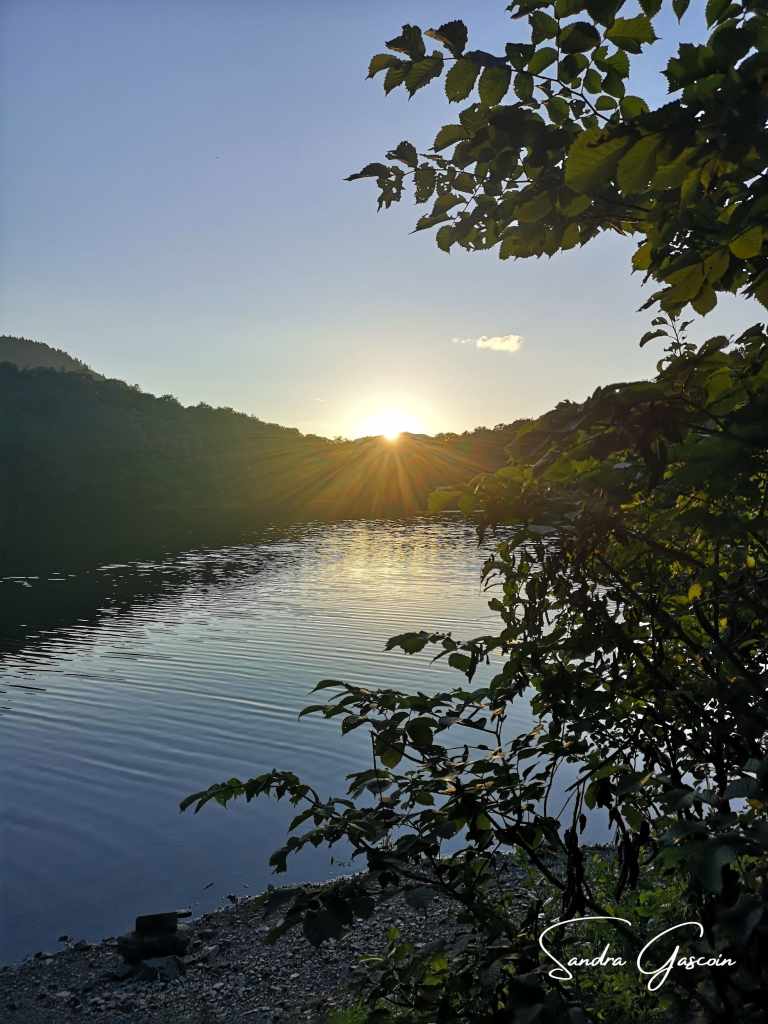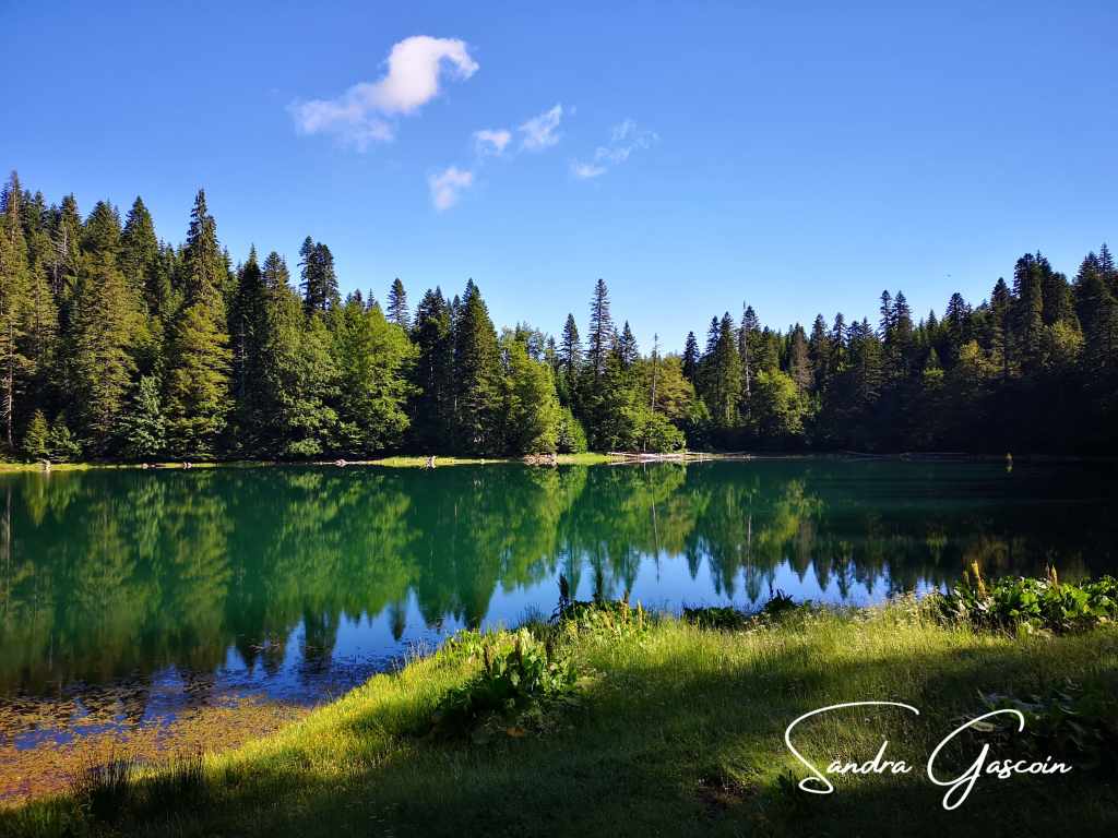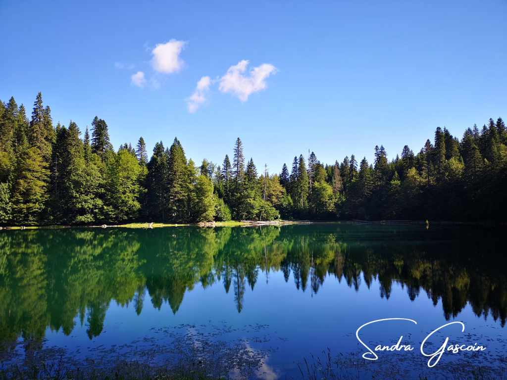 La journée ne pouvait pas mieux commencer : les vilains nuages de la veille ont complètement disparu. Le ciel bleu resplendit sur la surface du lac, les oiseaux entonnent leurs chants matinaux en saluant le soleil naissant, tout est paisible. Je me sens en paix. Je repère la source où je remplis mes bouteilles, anticipant le prochain point d’eau qui se trouve à une quinzaine de kilomètres. Puis, pleine d’entrain, je m’engage sur le sentier encore humide, abrité sous le feuillage des grands sapins.